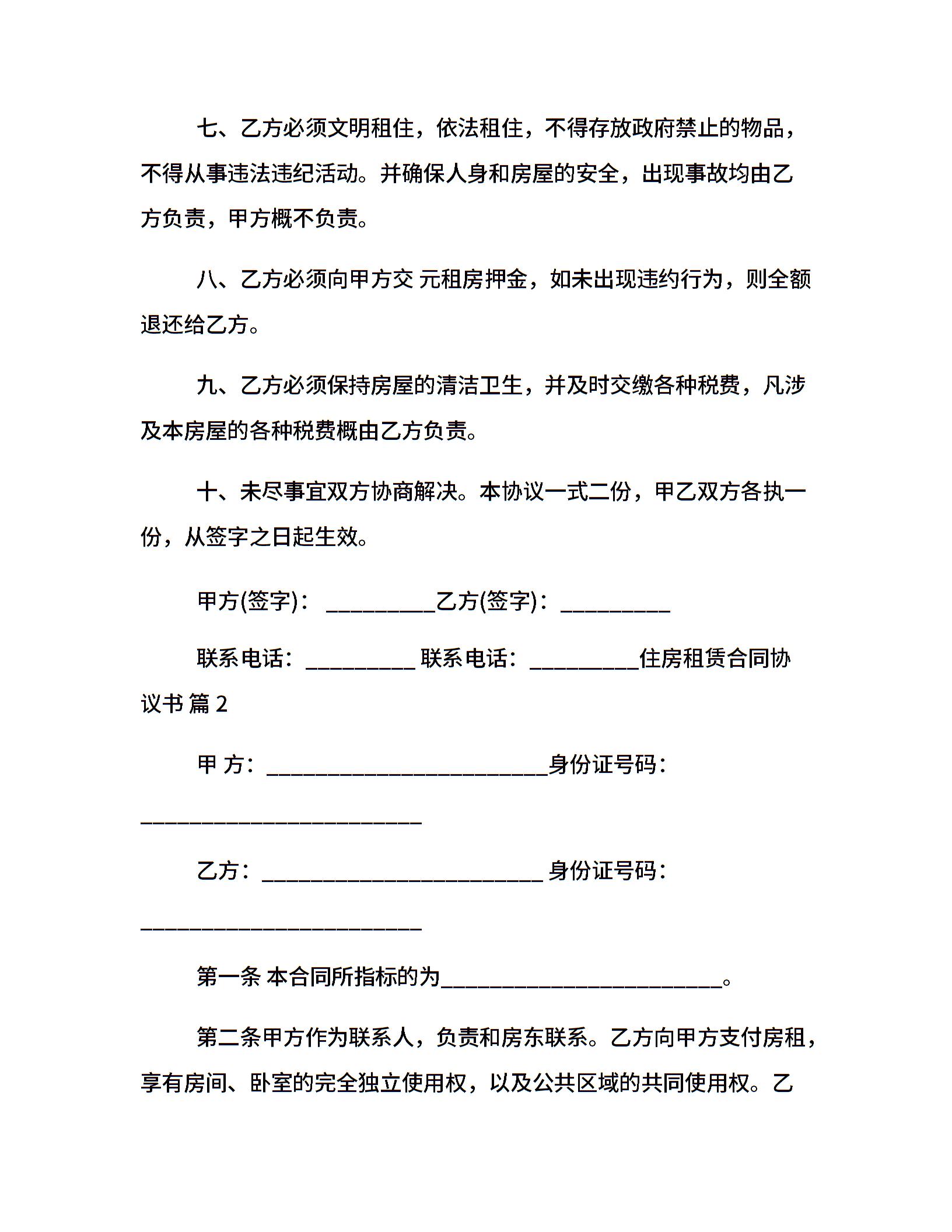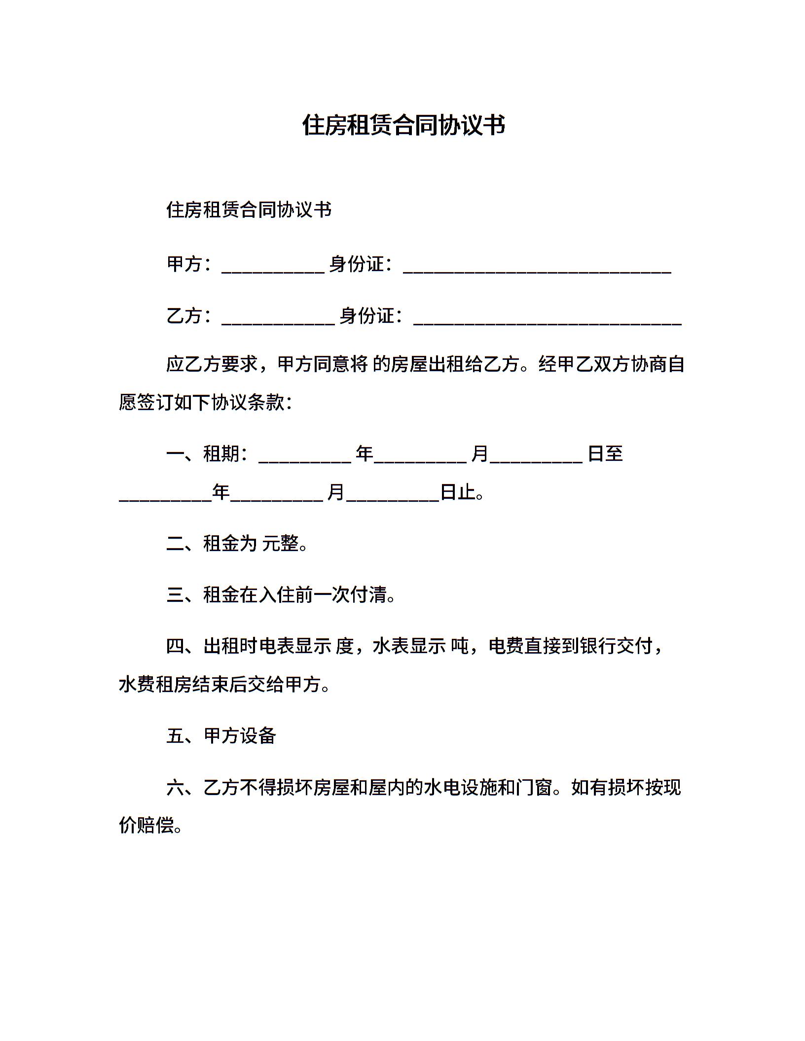 住房租赁合同协议书