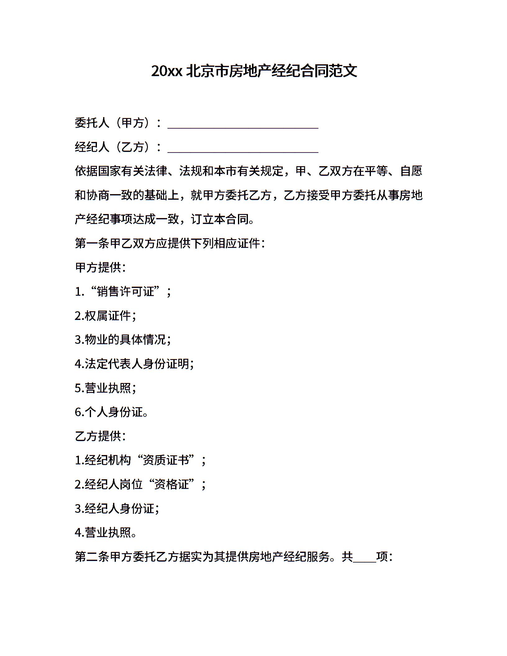 20xx北京市房地产经纪合同范文