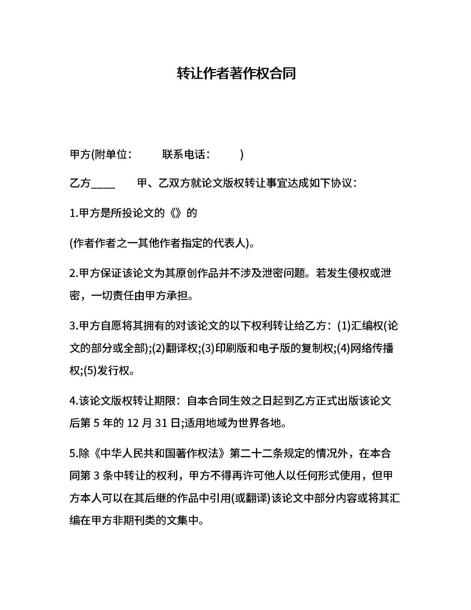 转让作者著作权合同