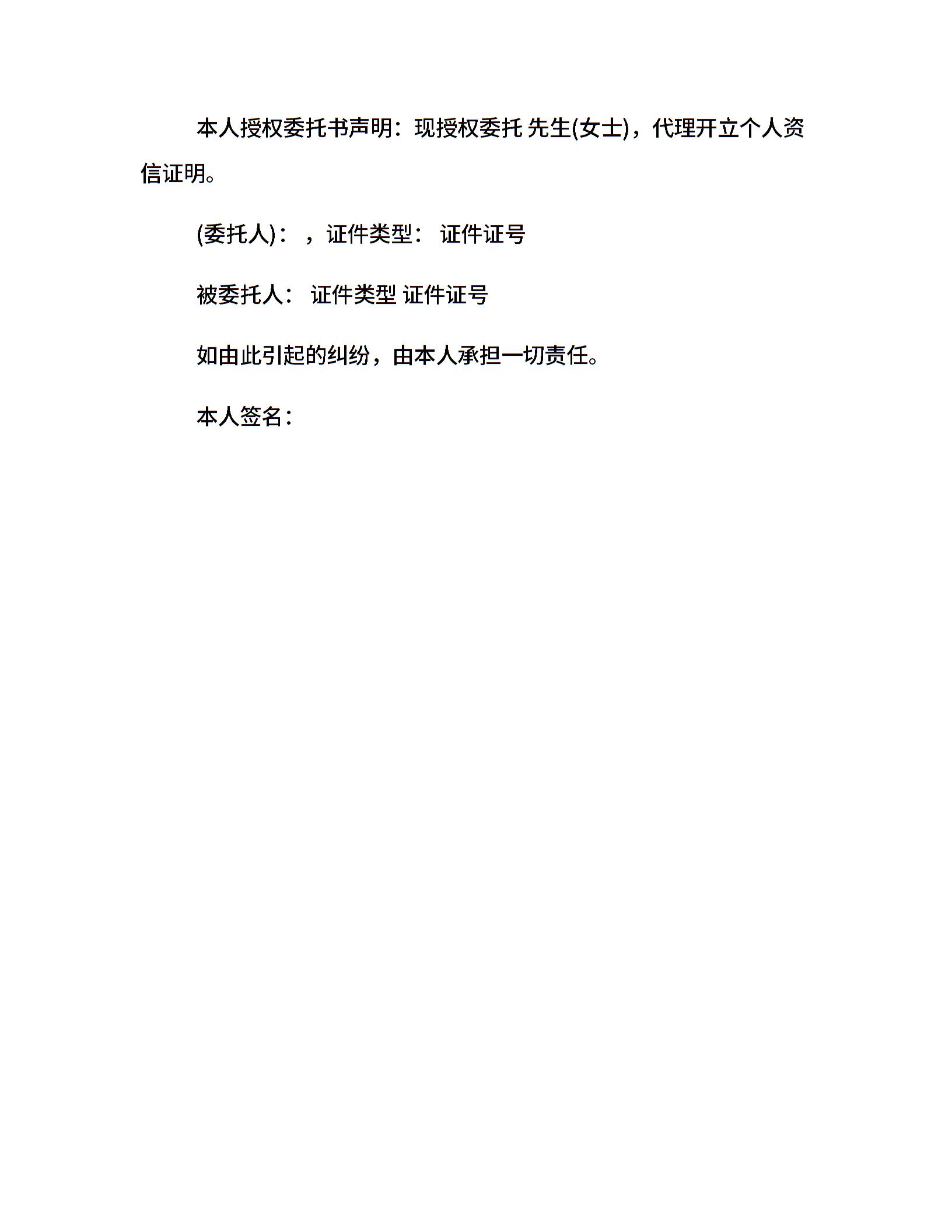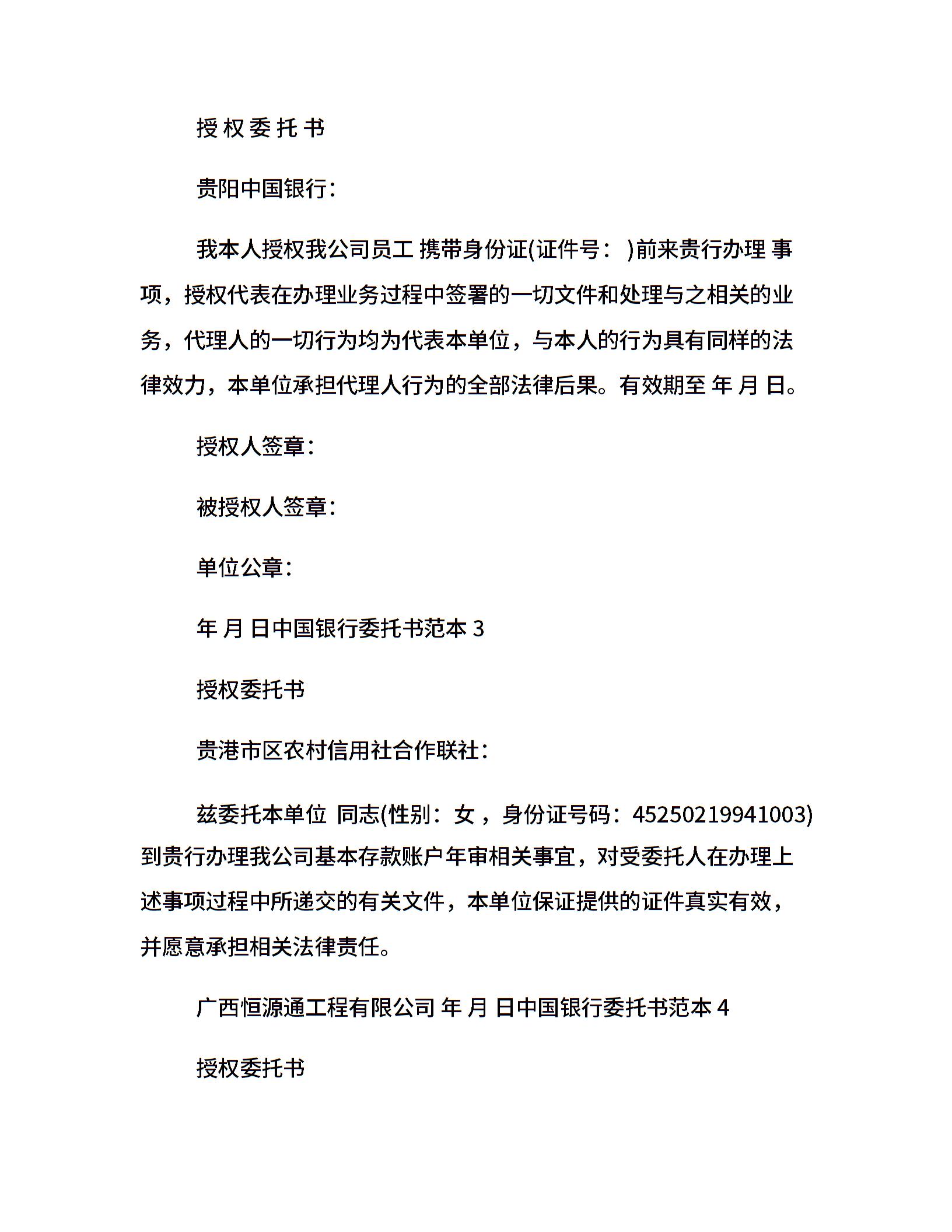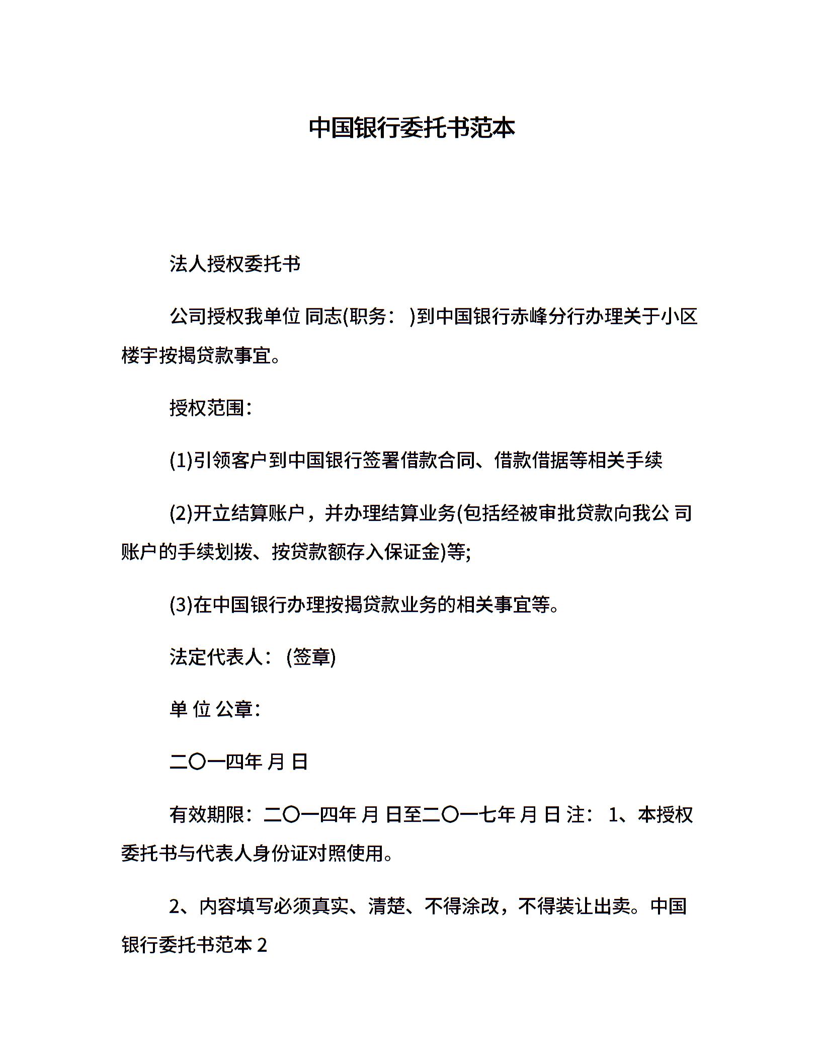 中国银行委托书范本