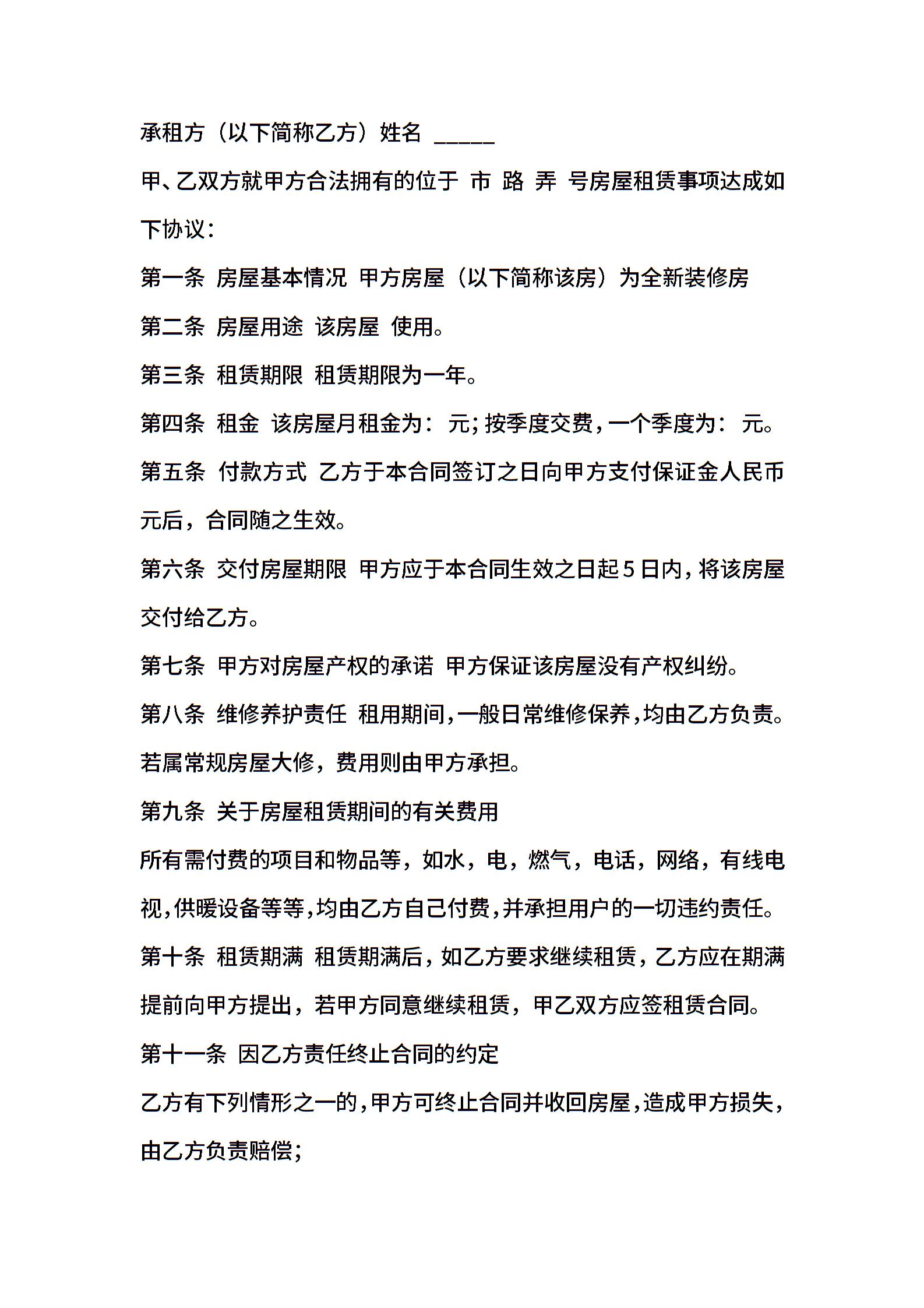 个人出租合同
