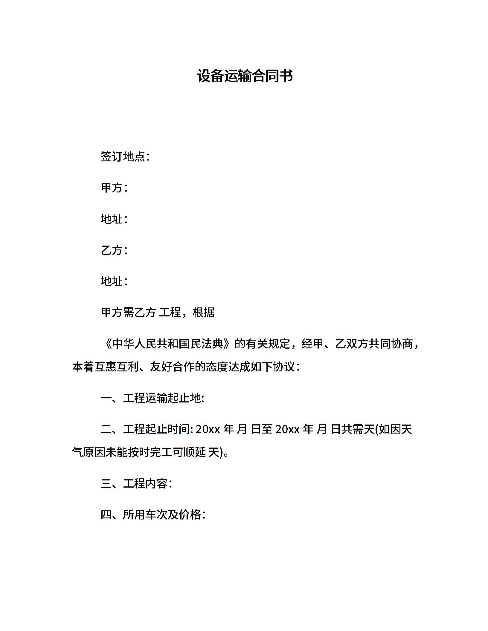 设备运输合同书