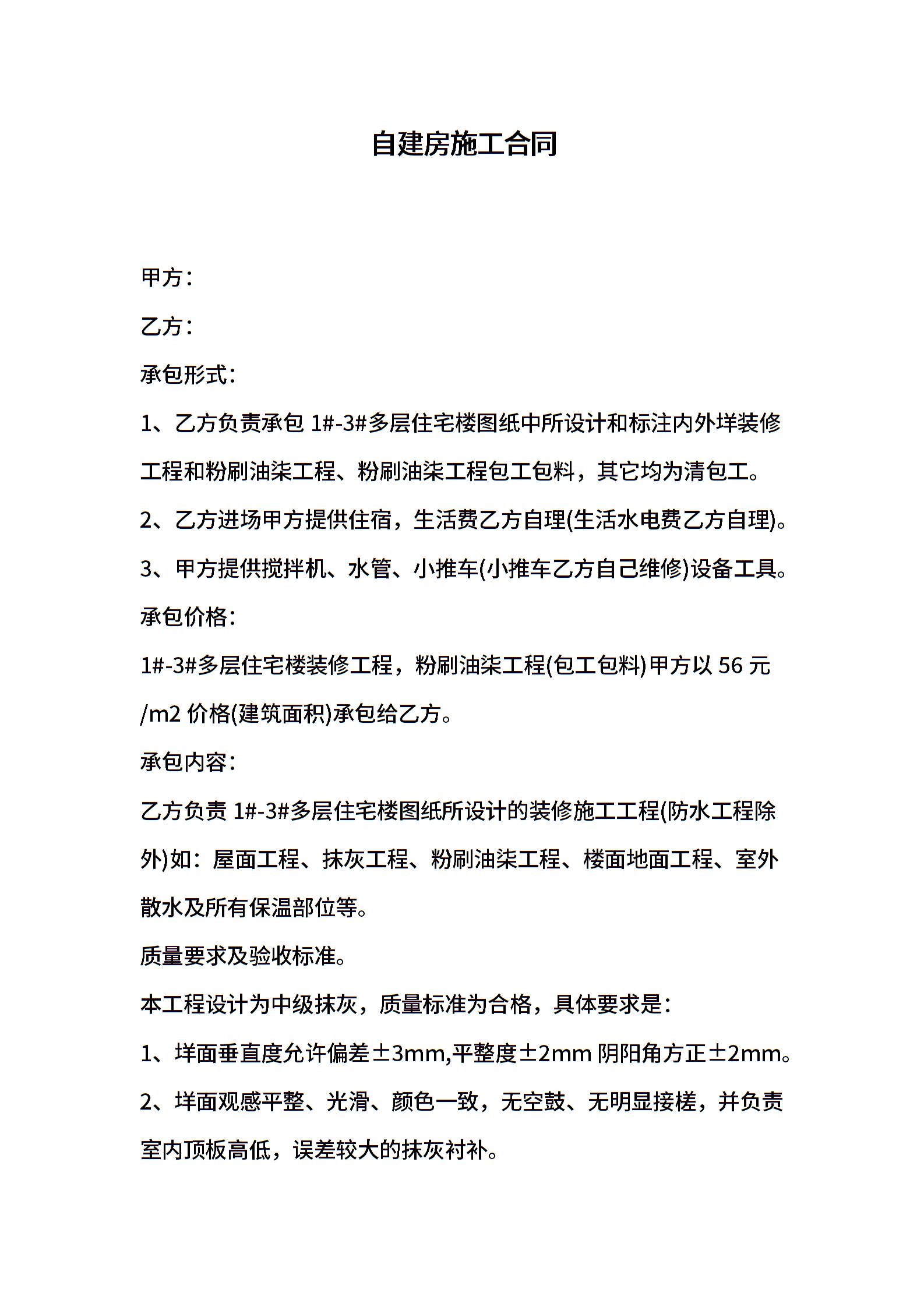 自建房施工合同通用