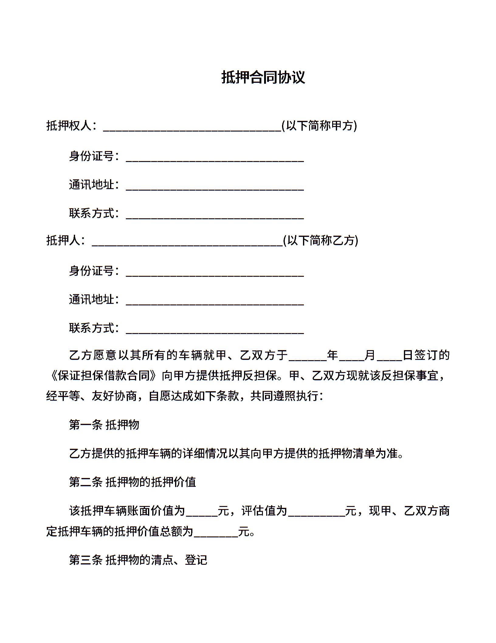 抵押合同协议