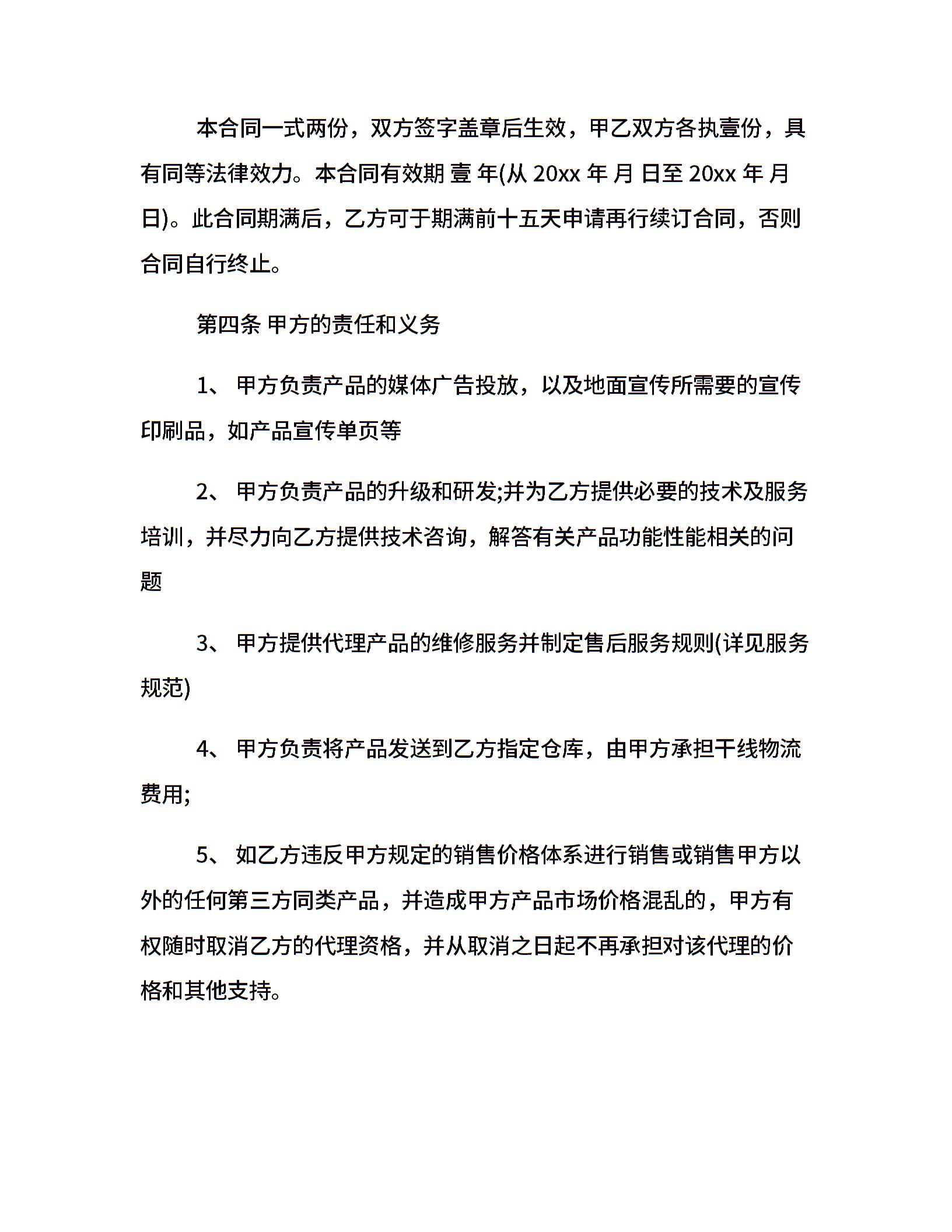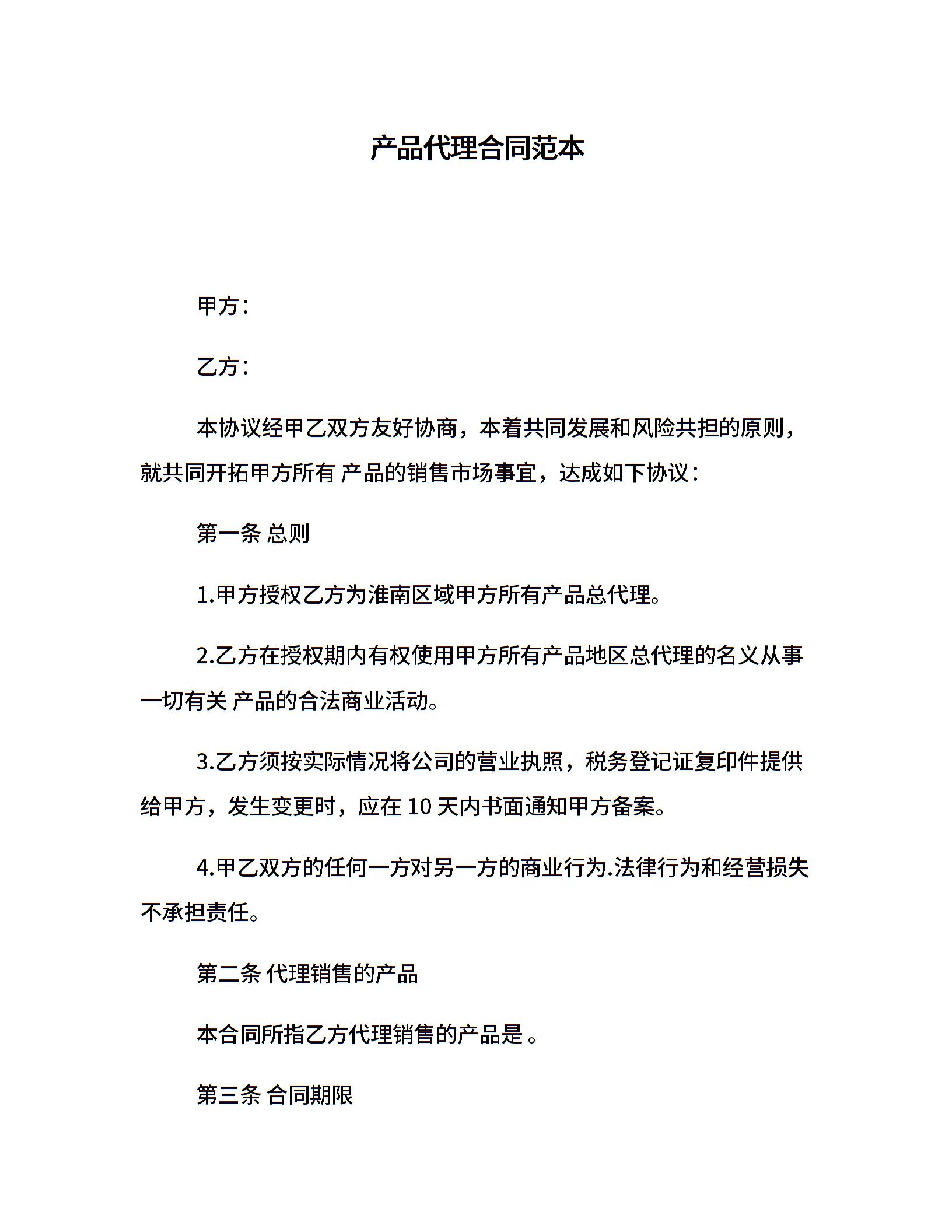 产品代理合同范本