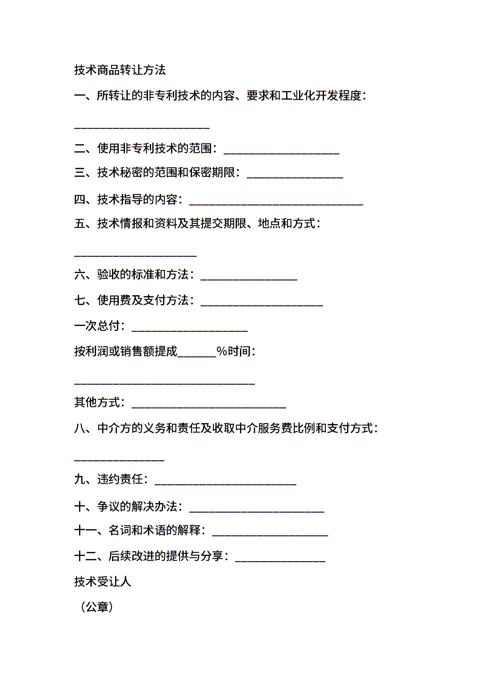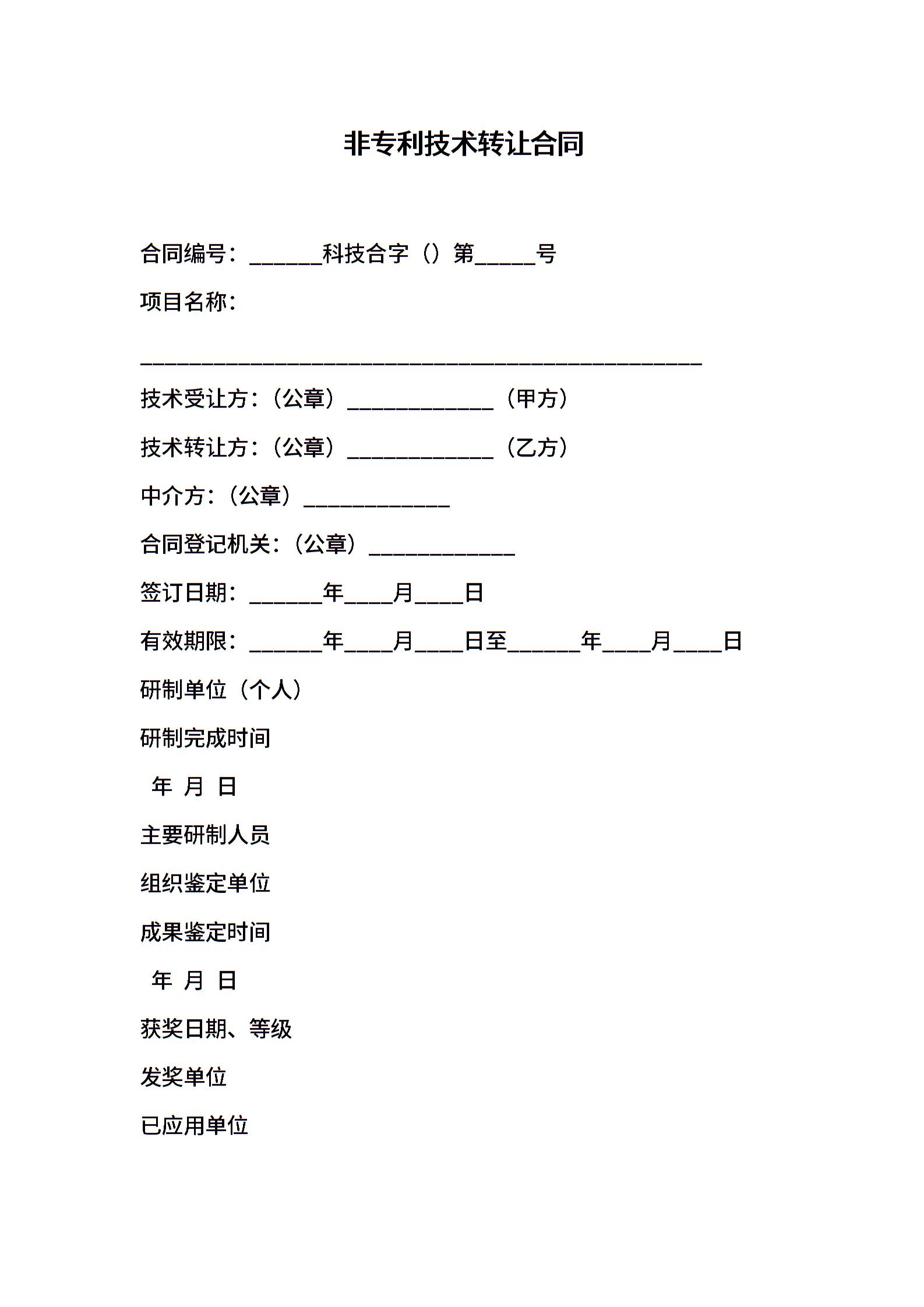 非专利技术转让合同