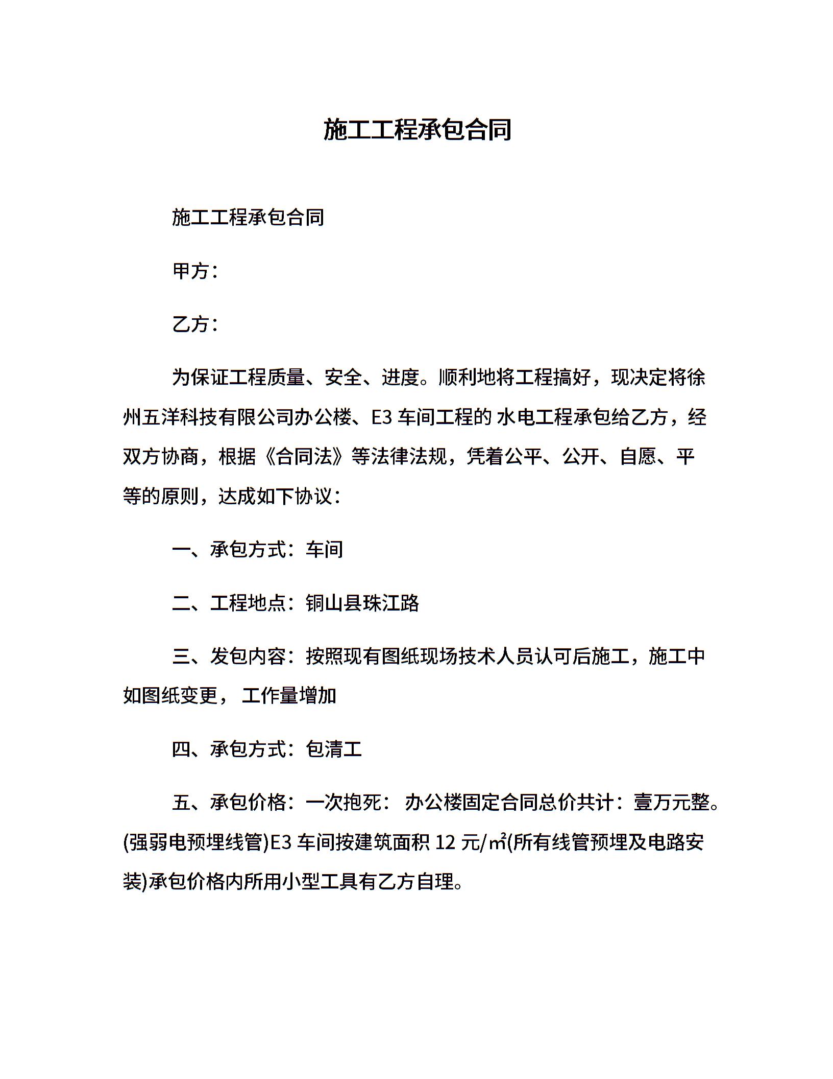 当前位置:量子办公 > 合同模板 > 工程施工 >