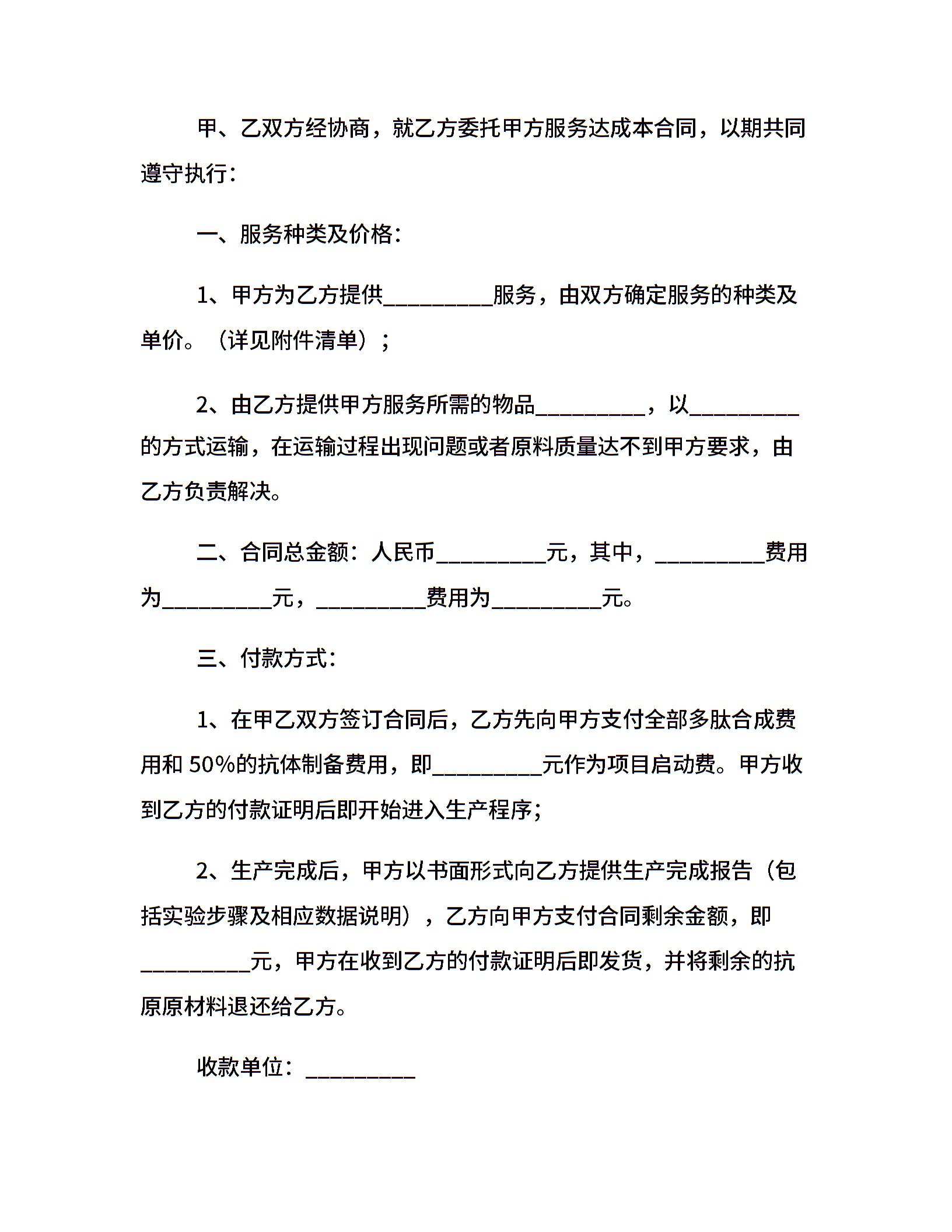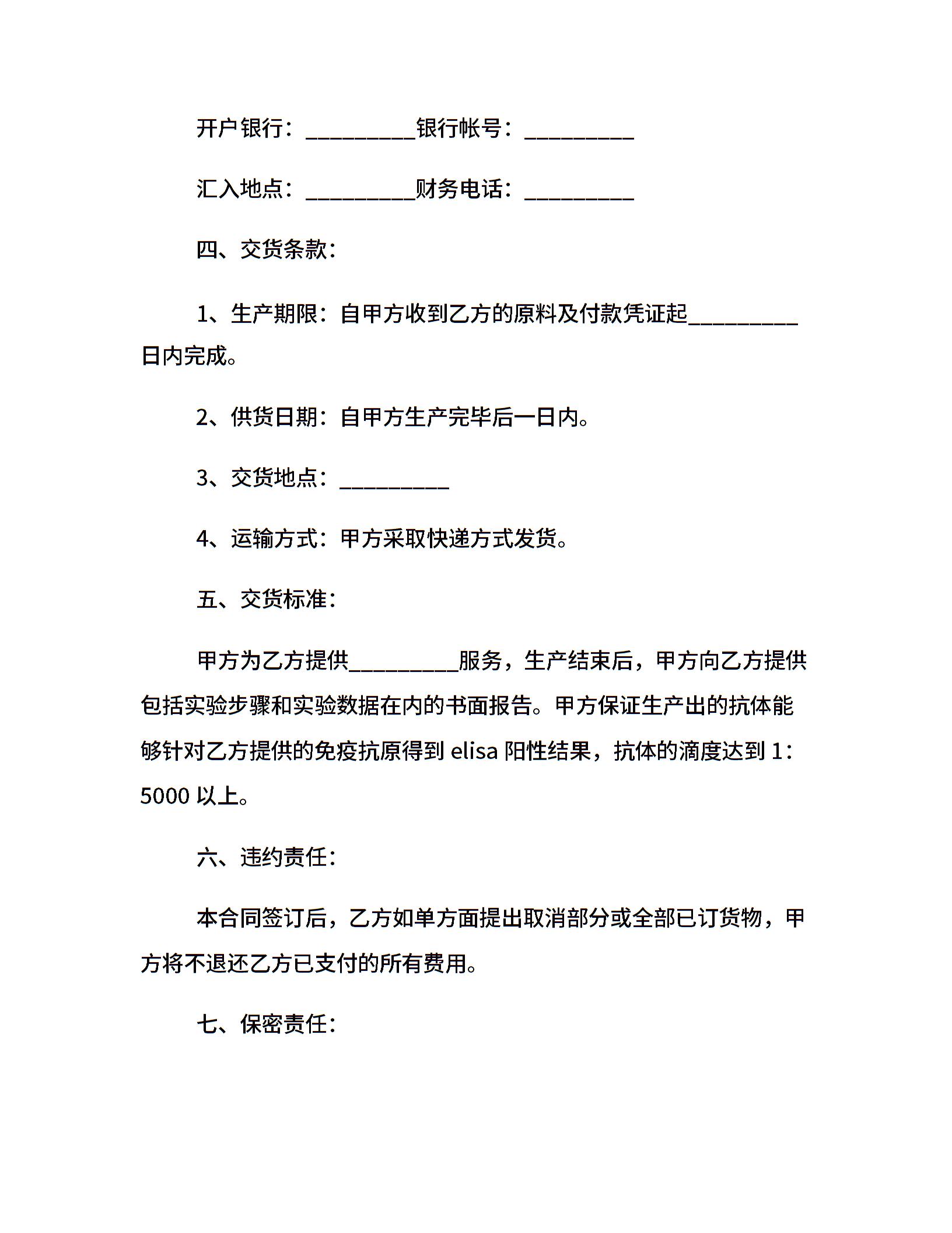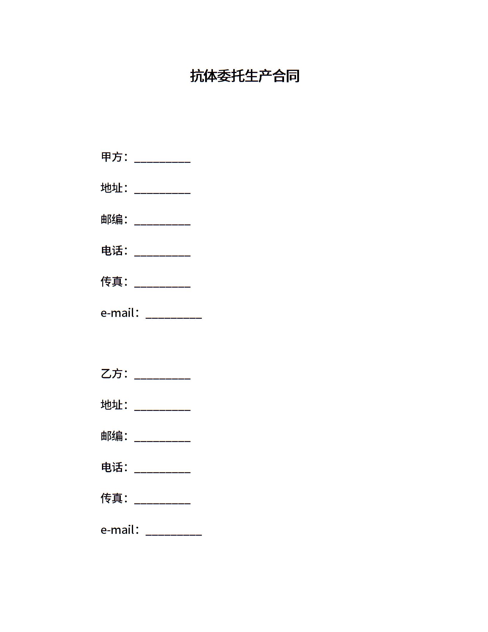 抗体委托生产合同