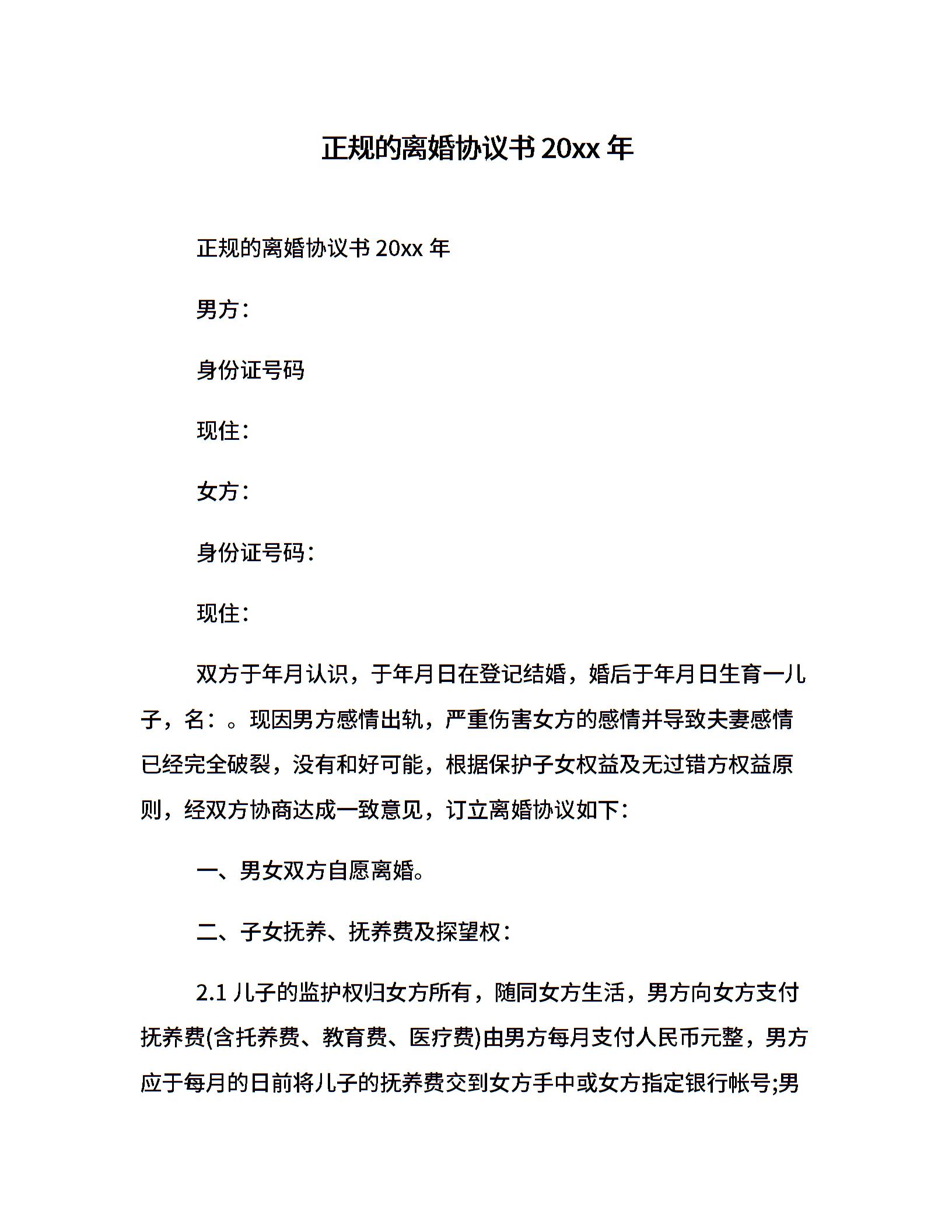 正规的离婚协议书20xx年