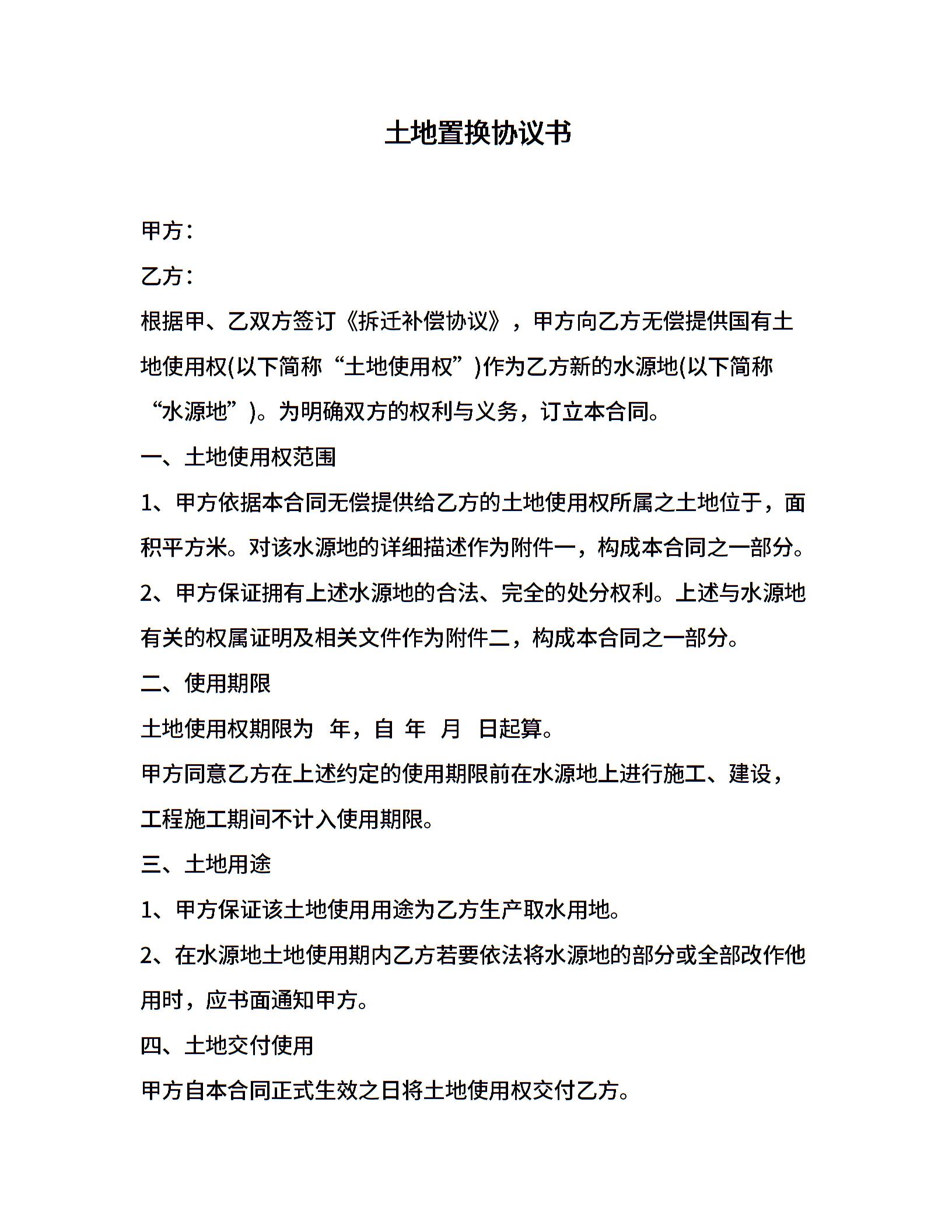 土地置换协议书