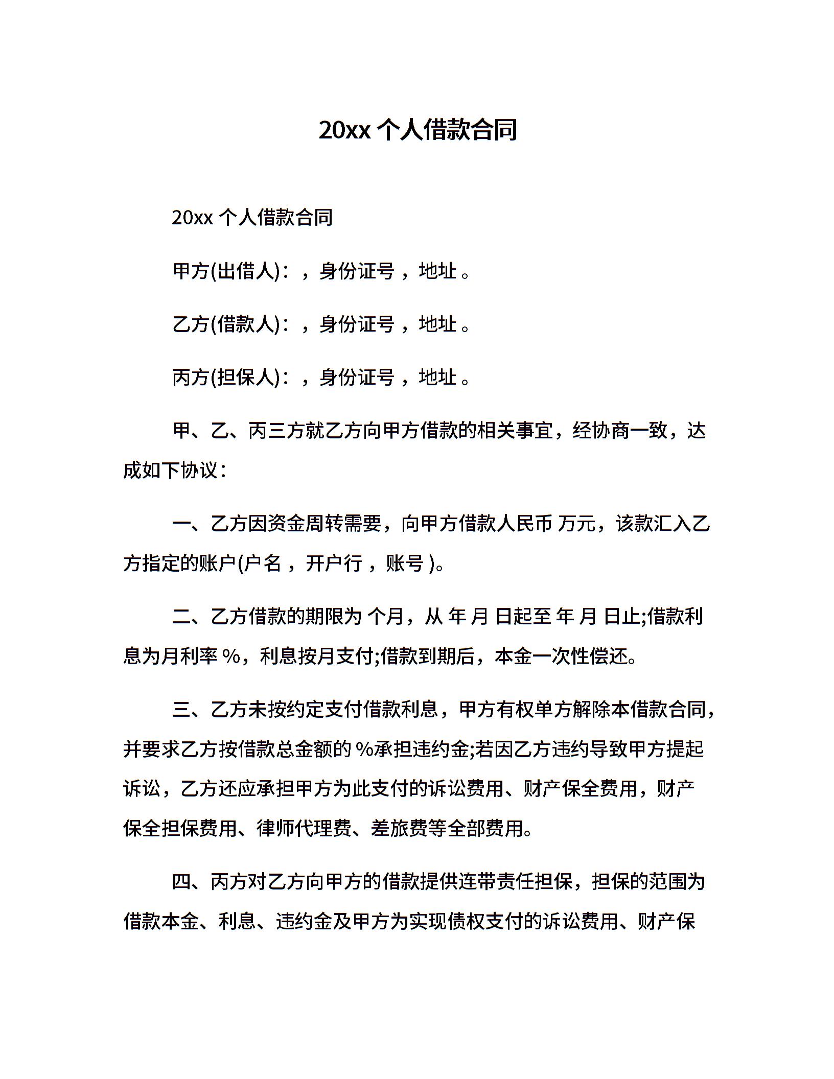 20xx个人借款合同