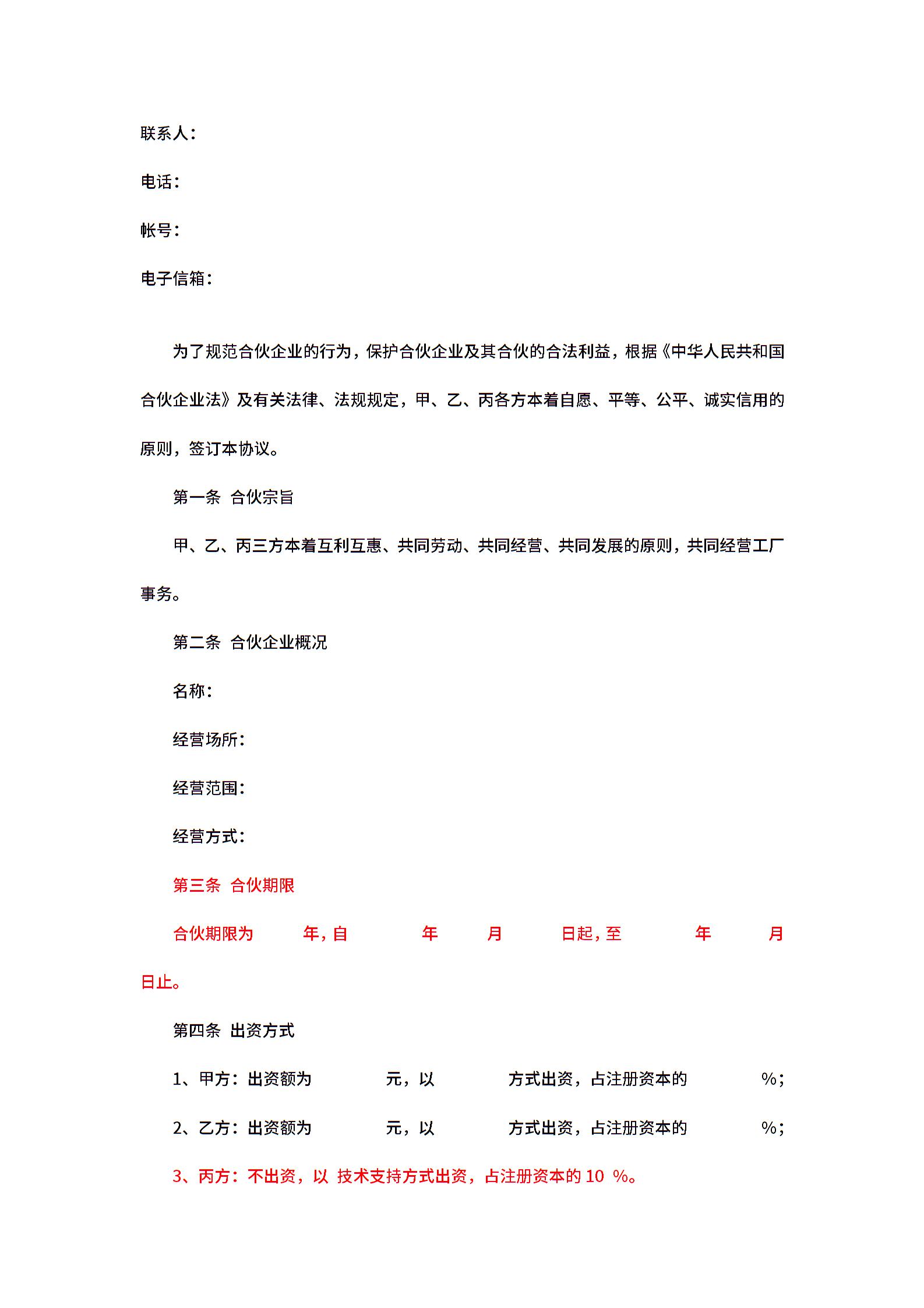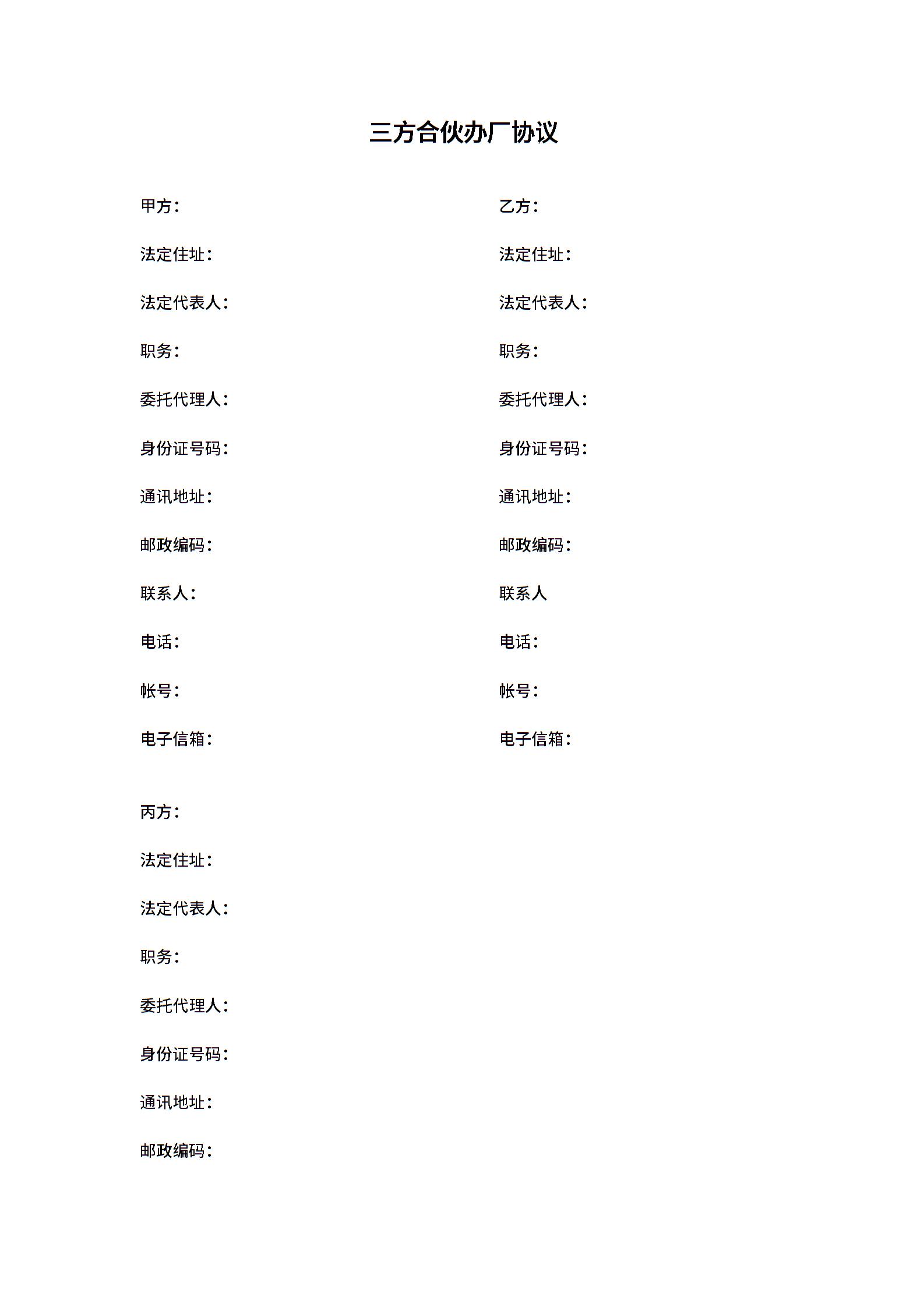 三方合伙办厂协议
