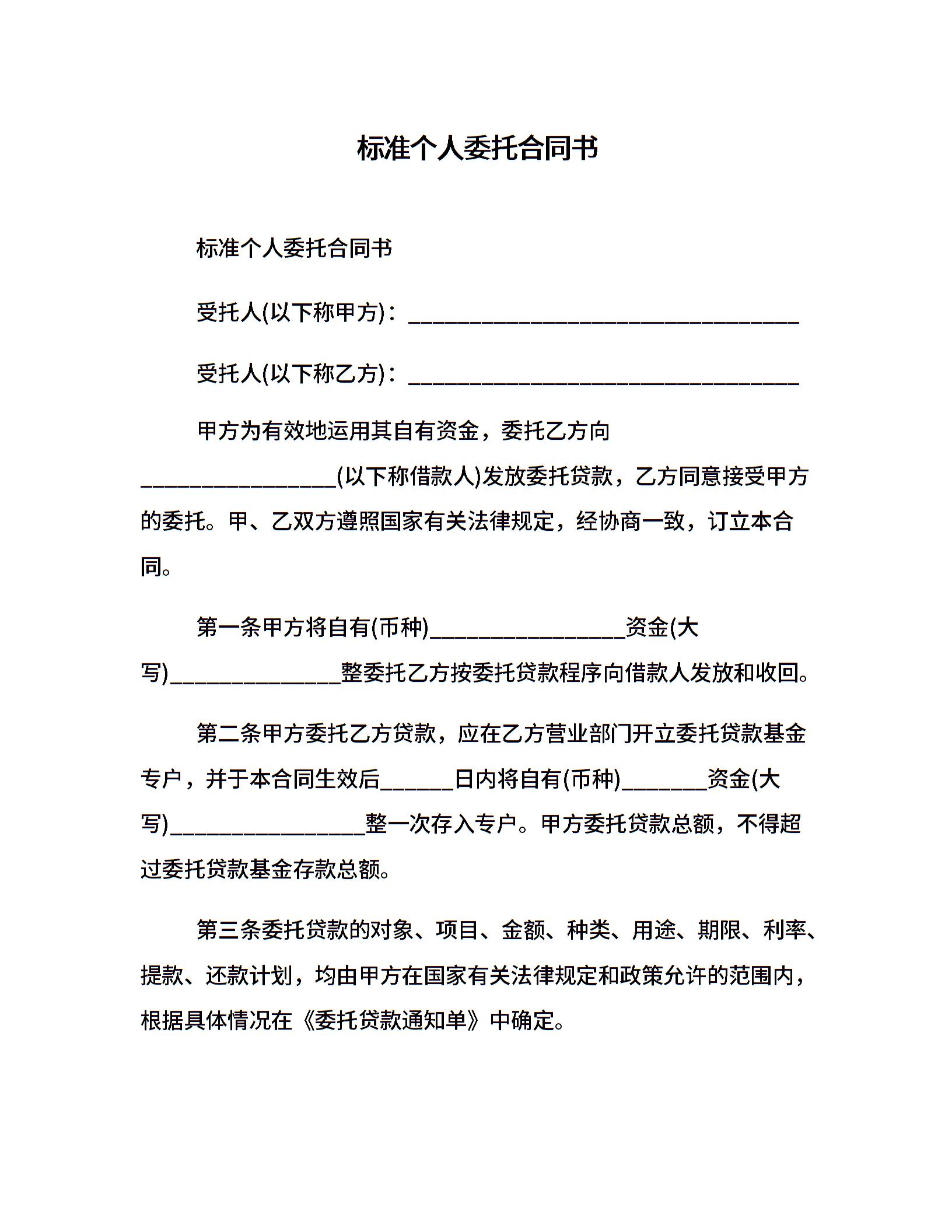 标准个人委托合同书