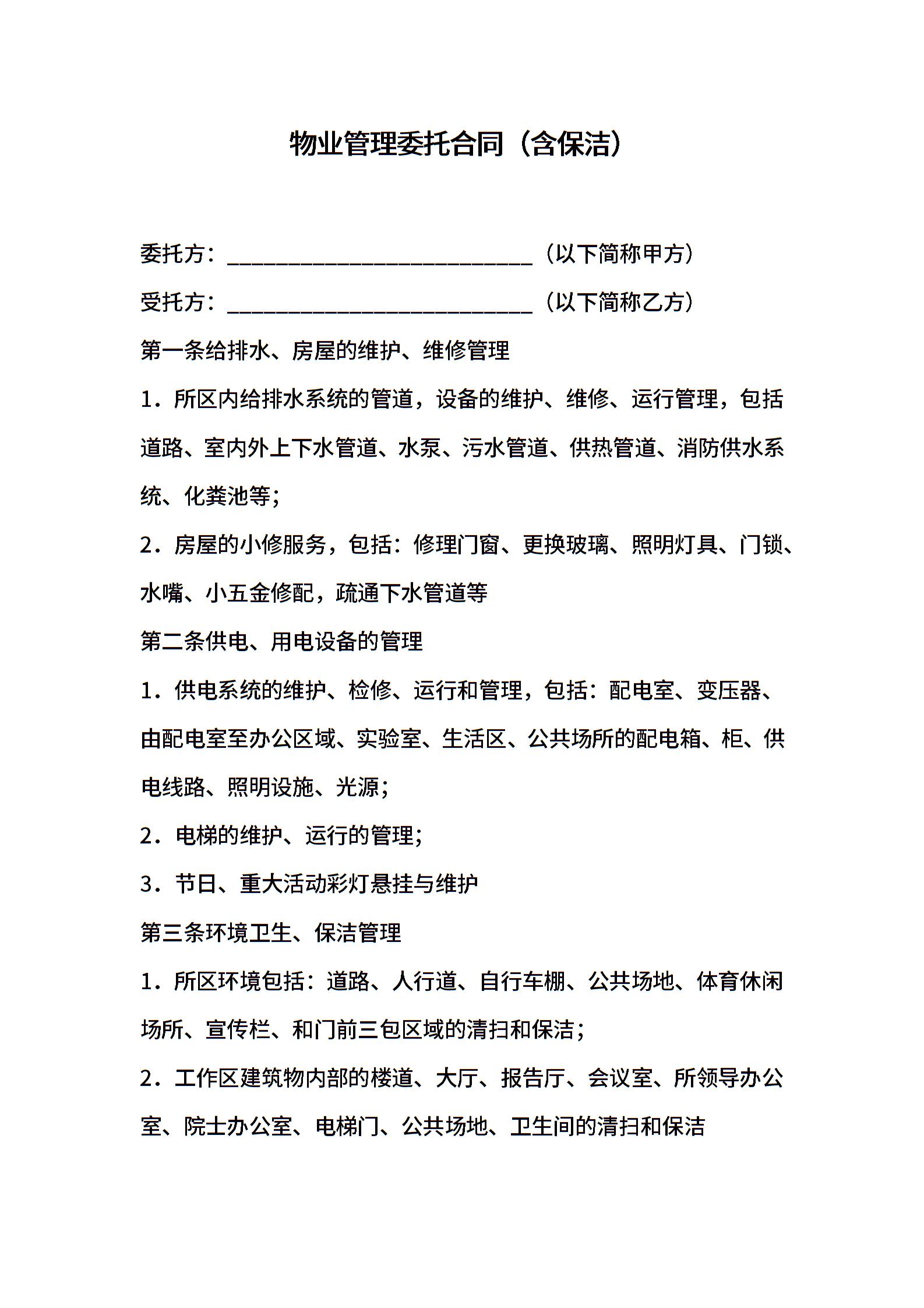 物业管理委托合同(含保洁)