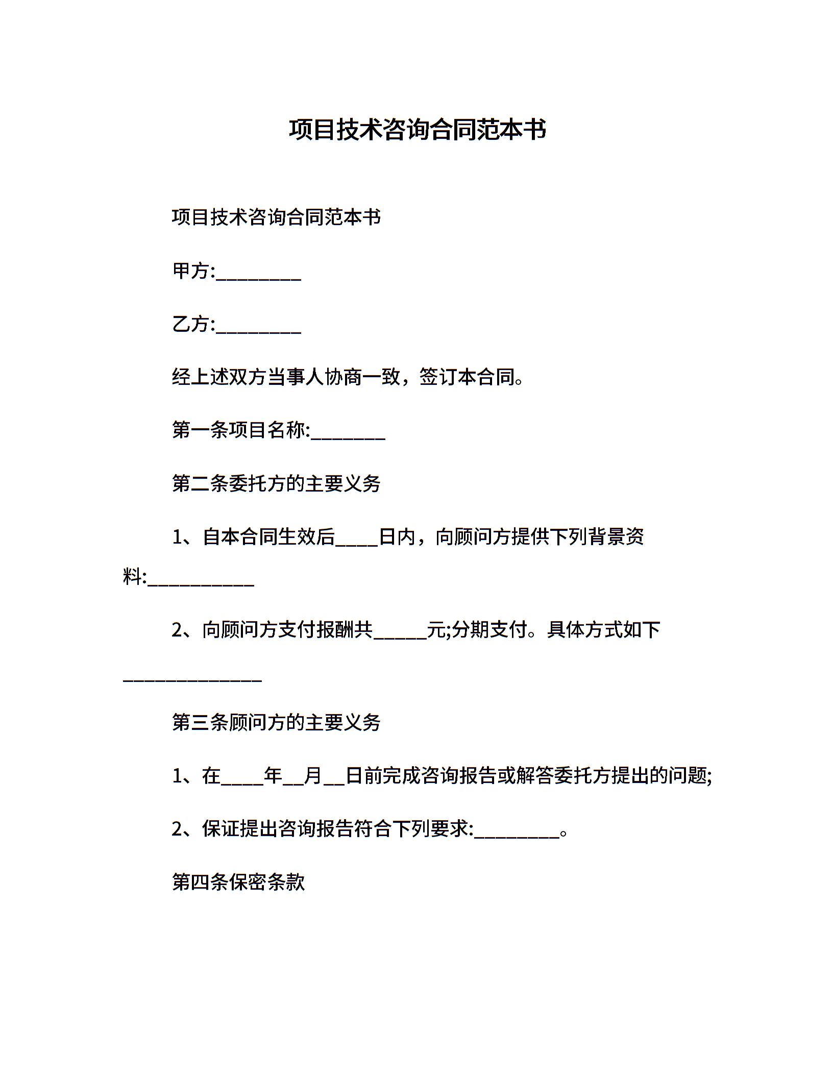 项目技术咨询合同范本书