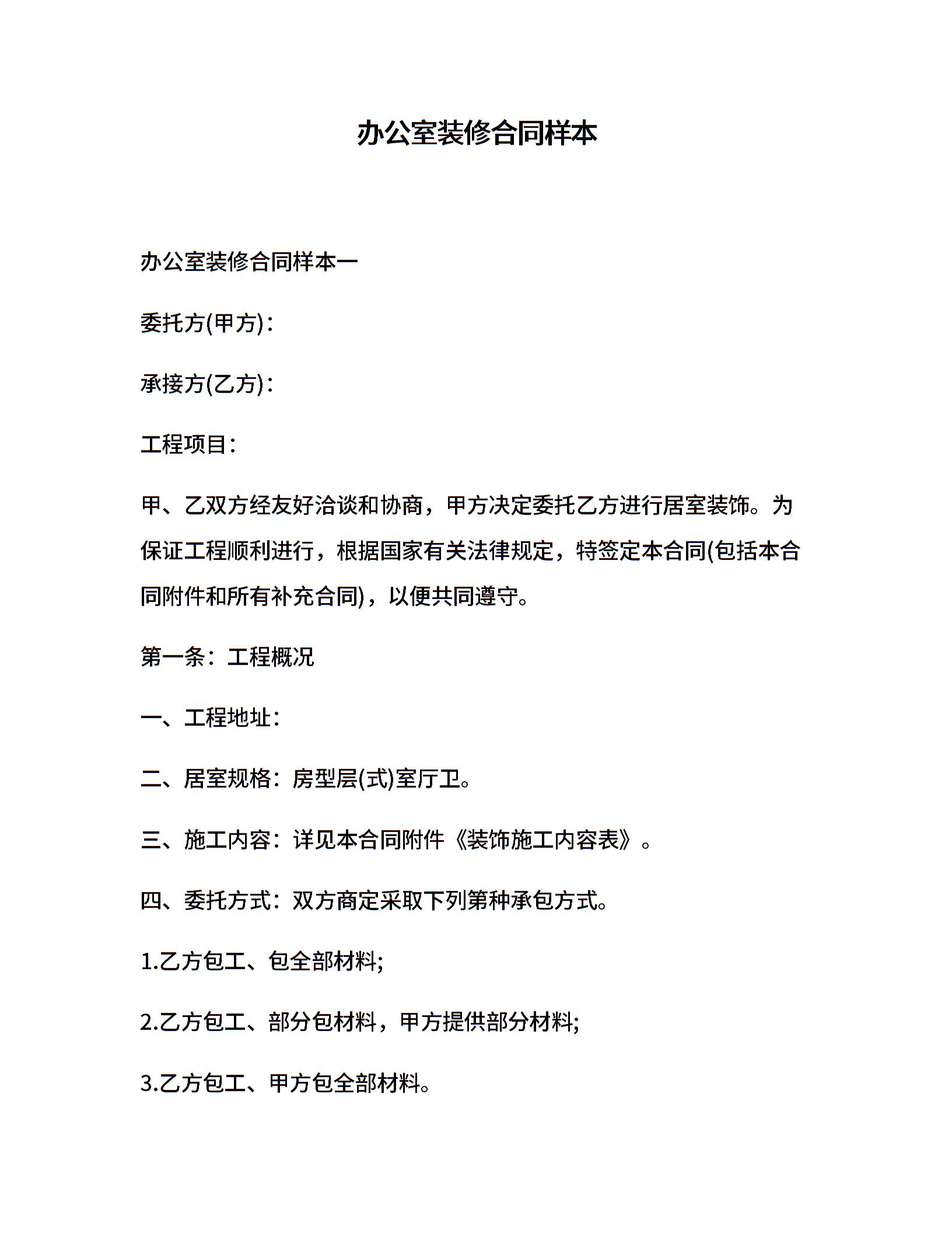 办公室装修合同样本