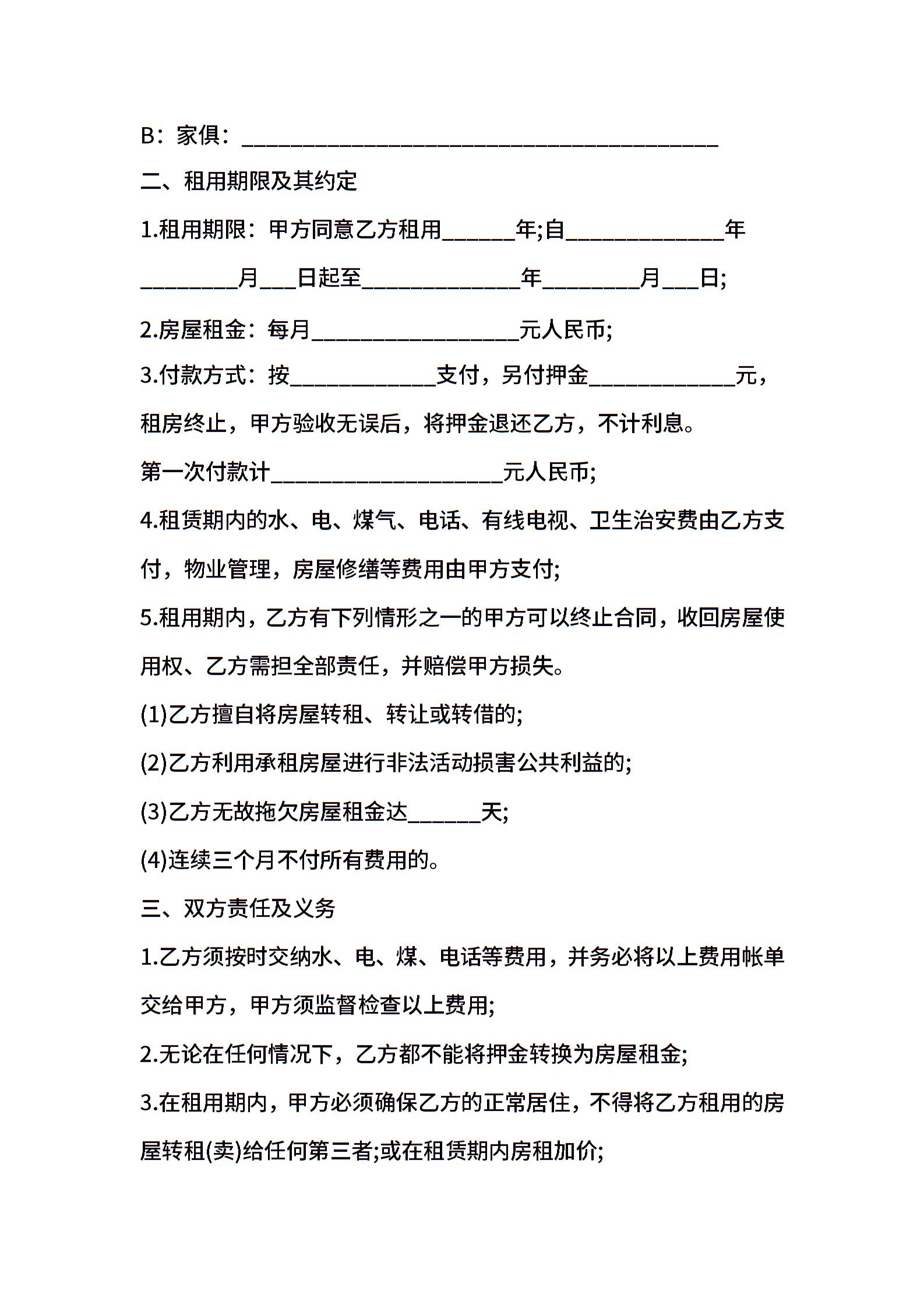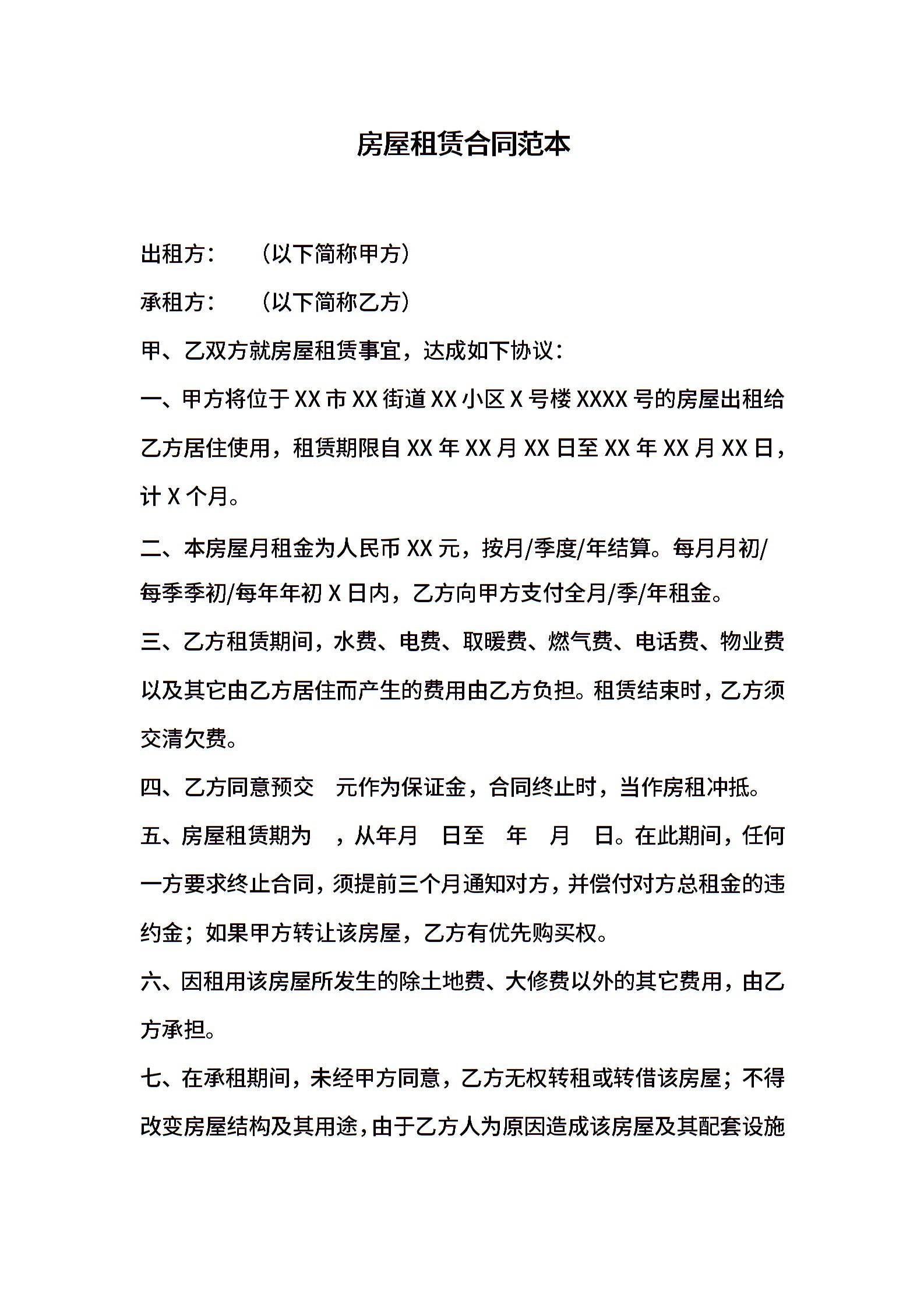房屋 租赁合同范本