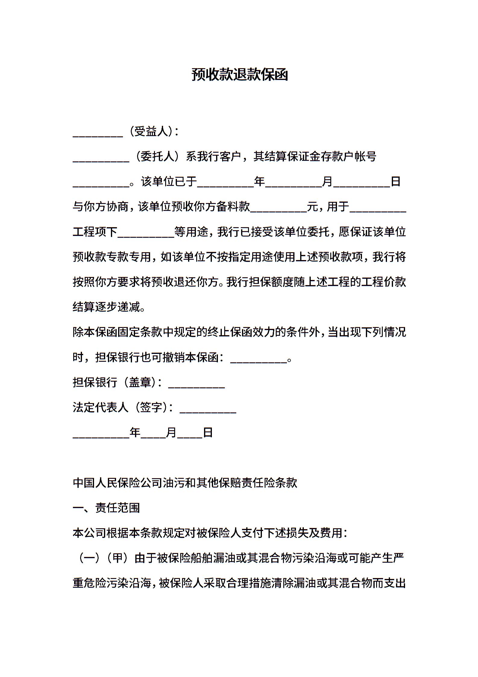 预收款退款保函