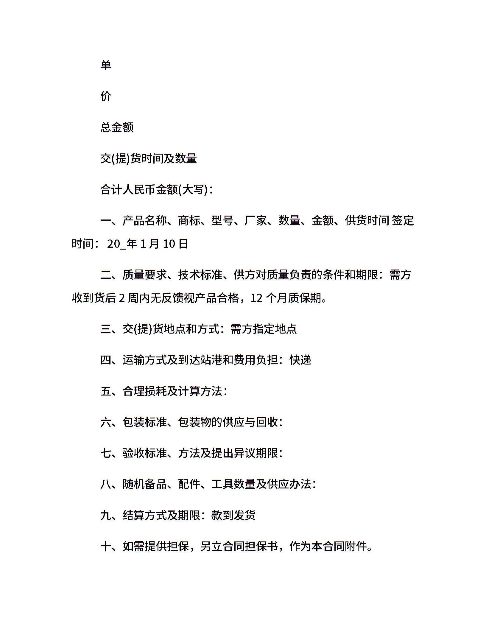 工矿产品购销合同