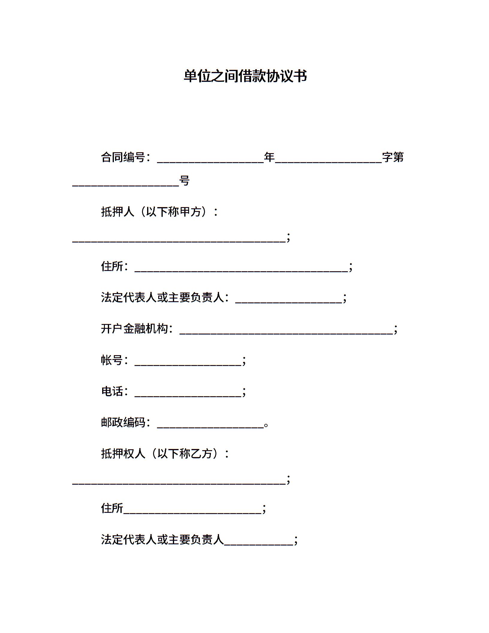 单位之间借款协议书