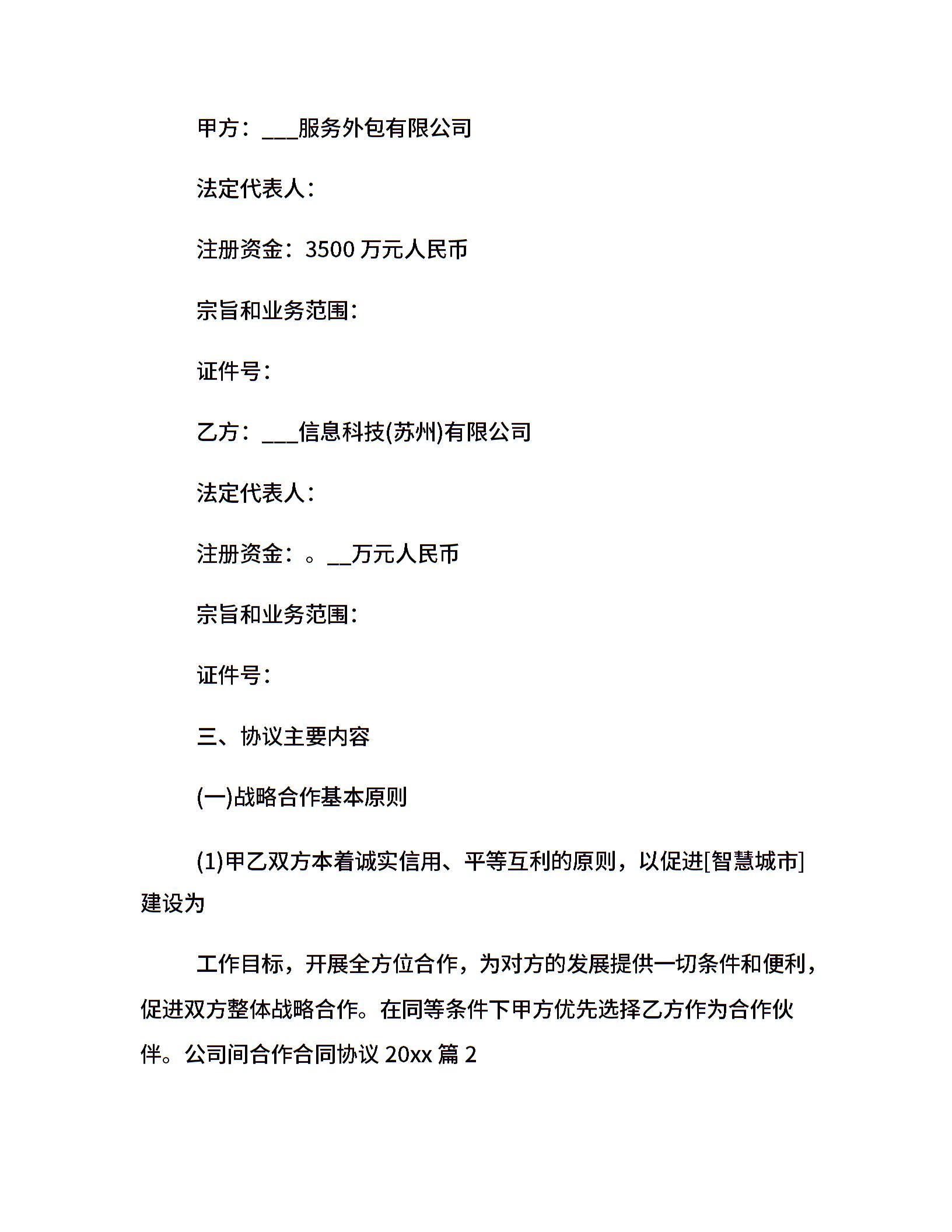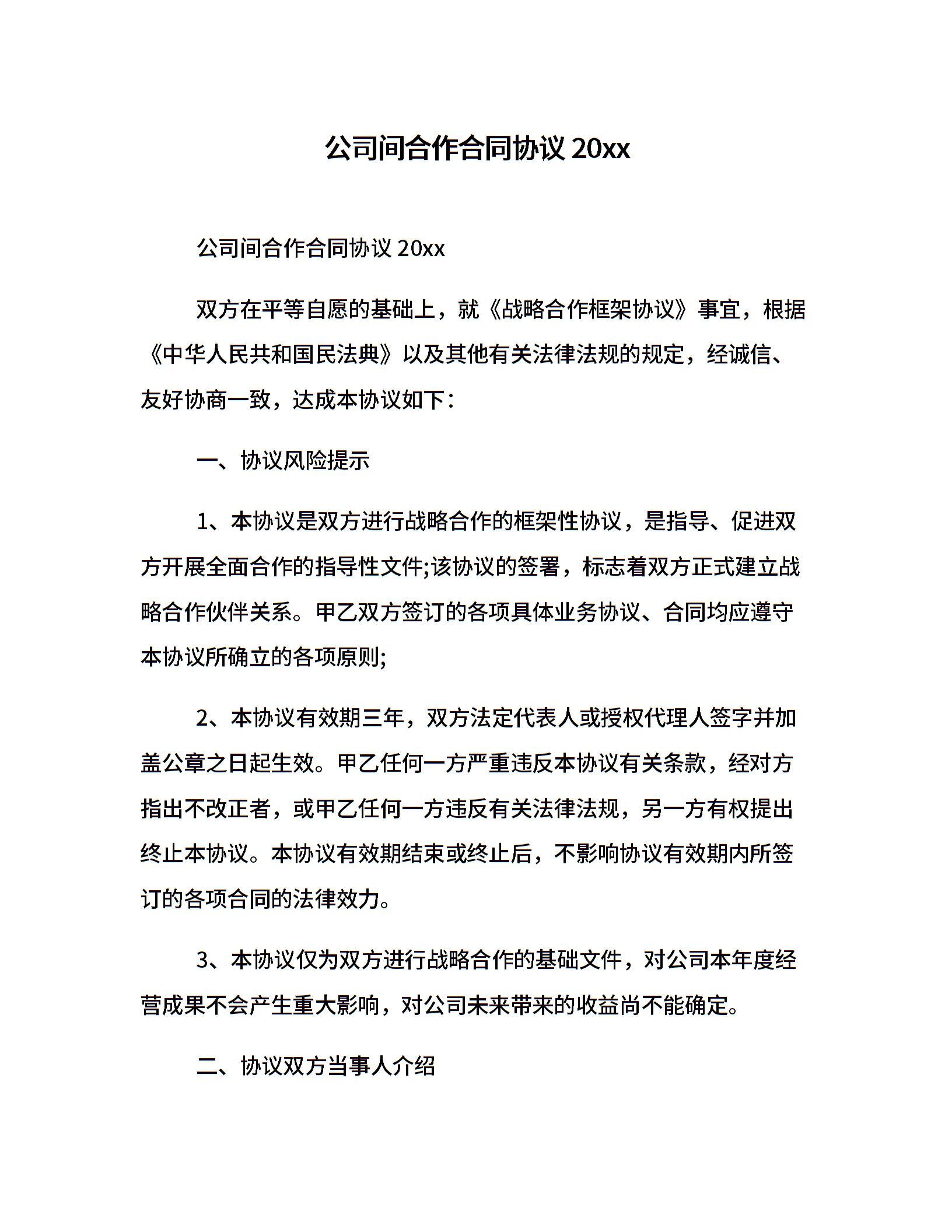 公司间合作合同协议20xx