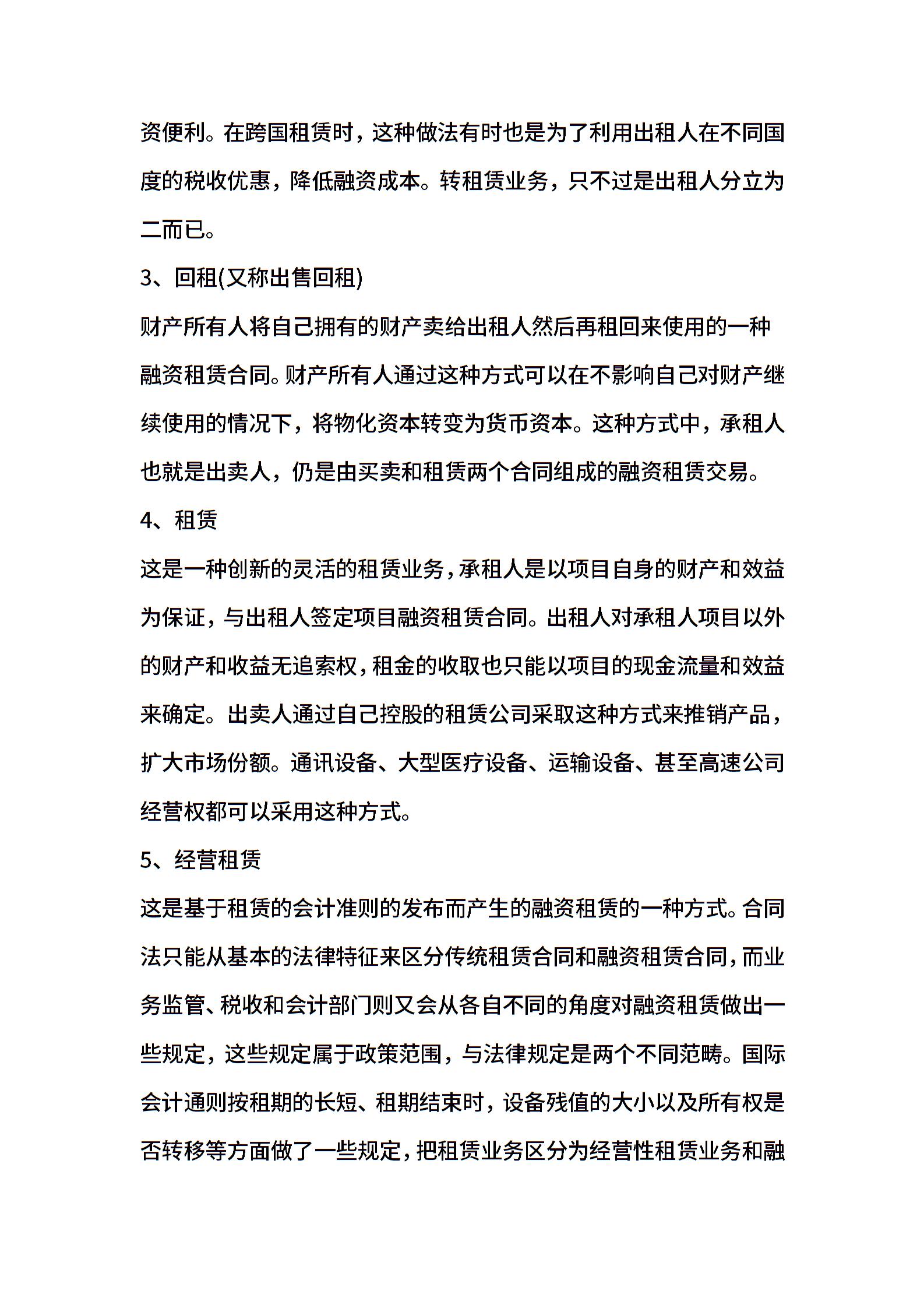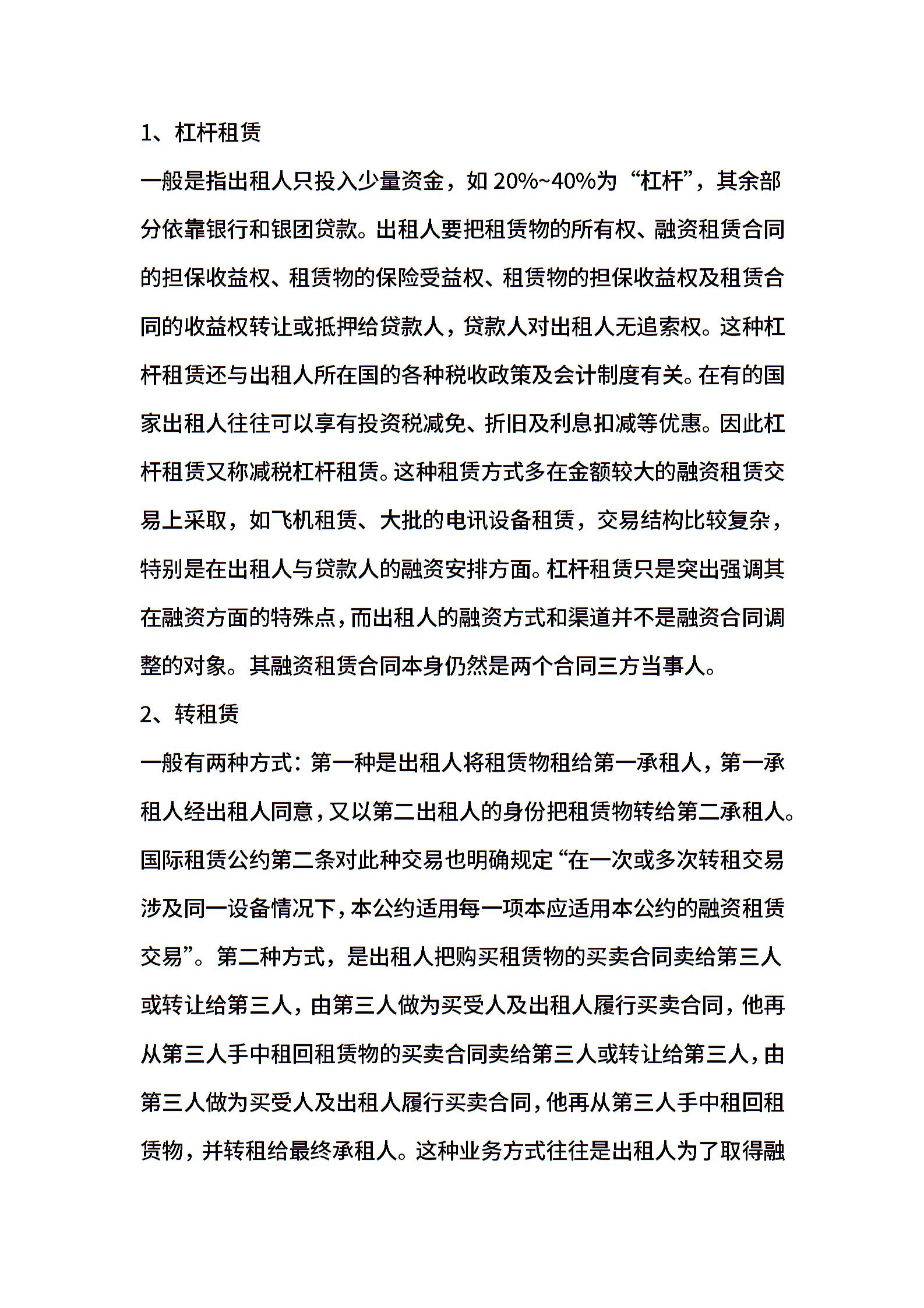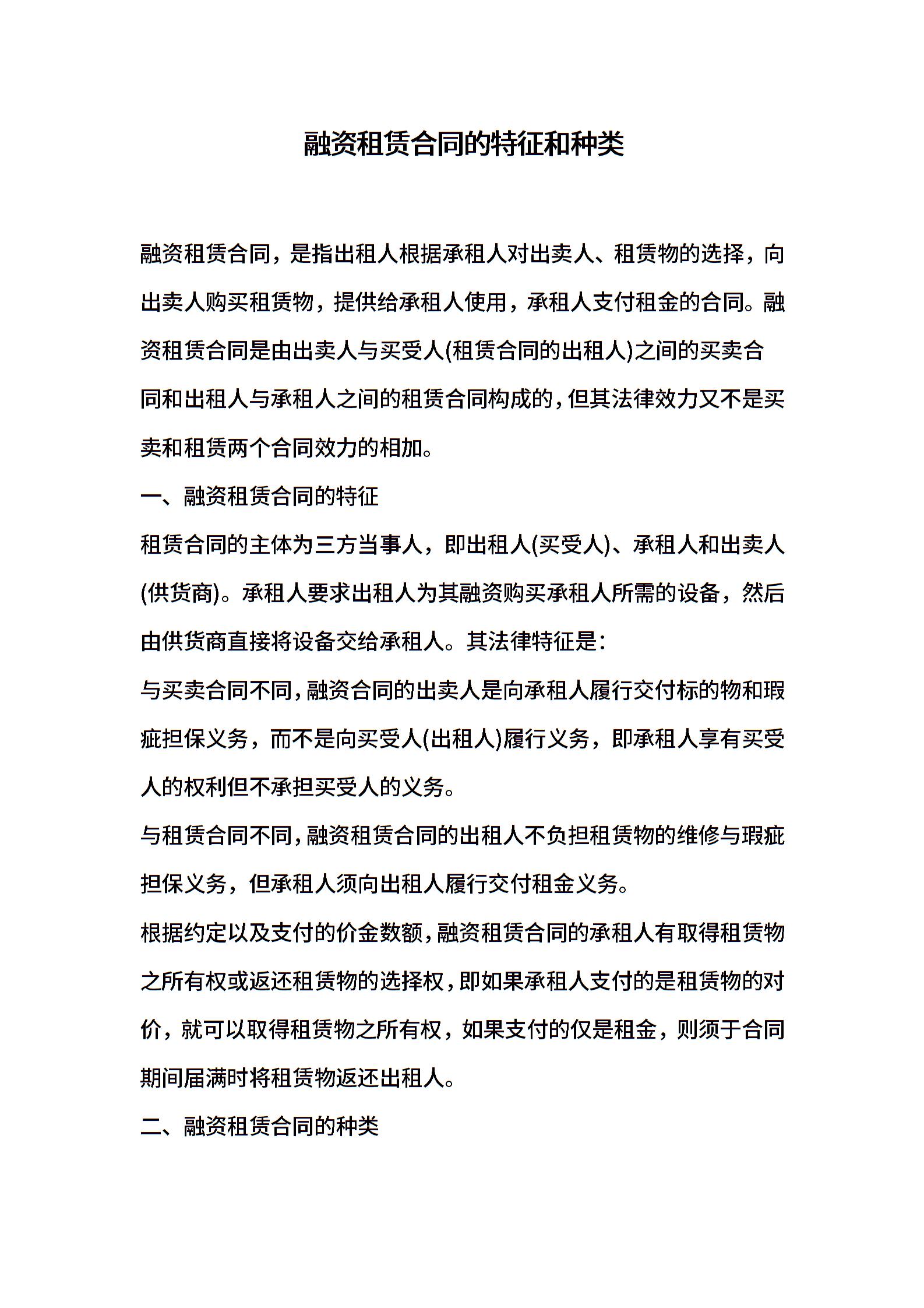 融资租赁合同的特征和种类