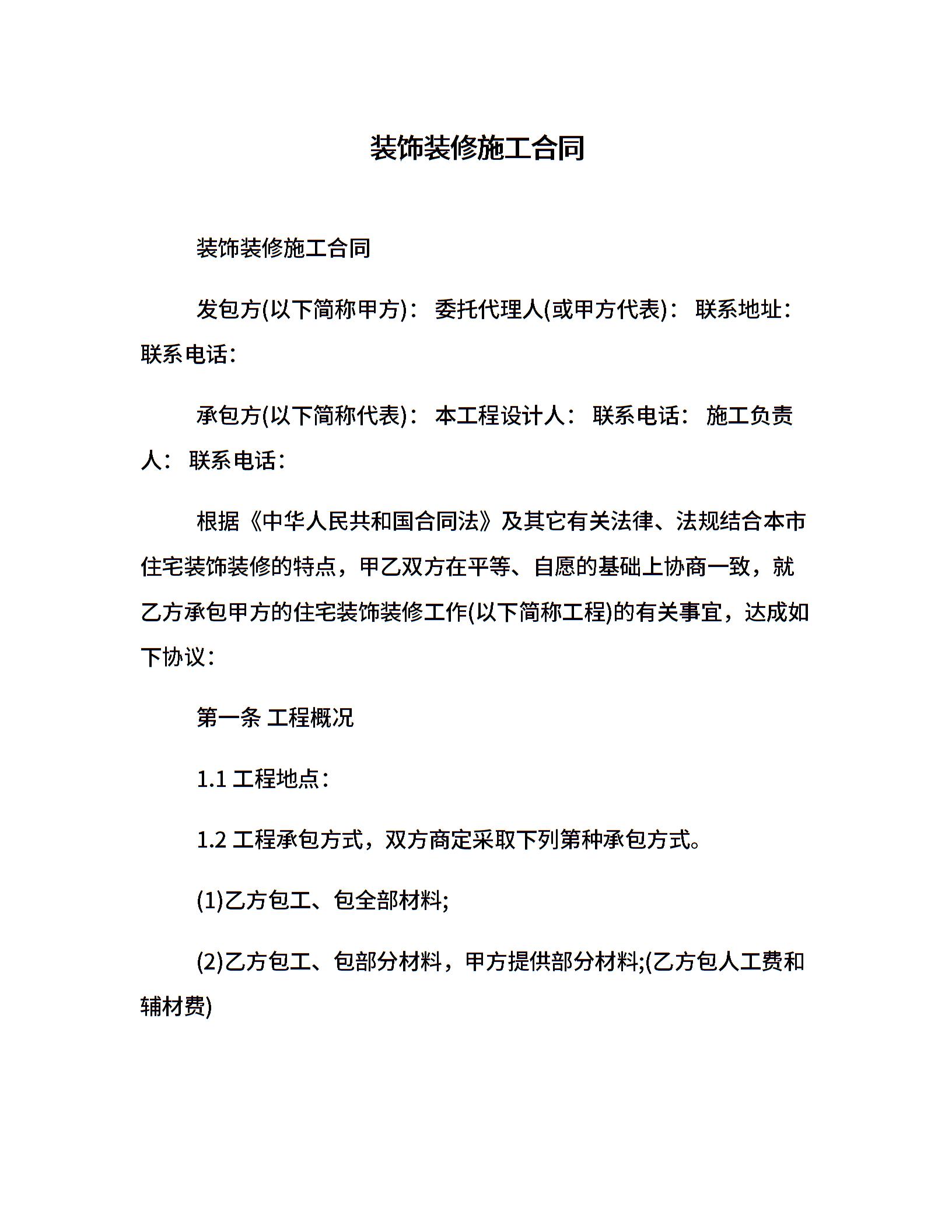 装饰装修施工合同