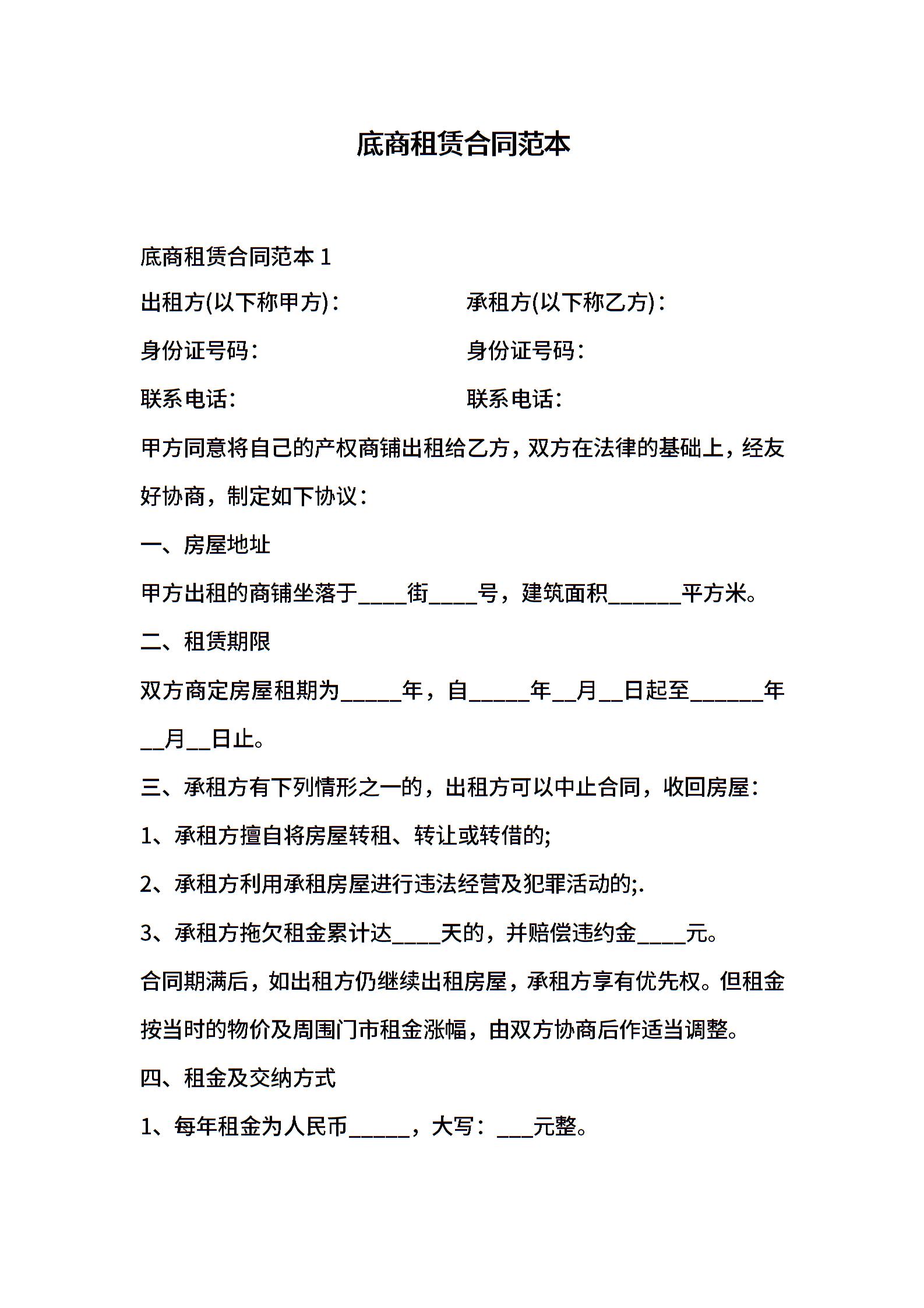 底商租赁合同范本