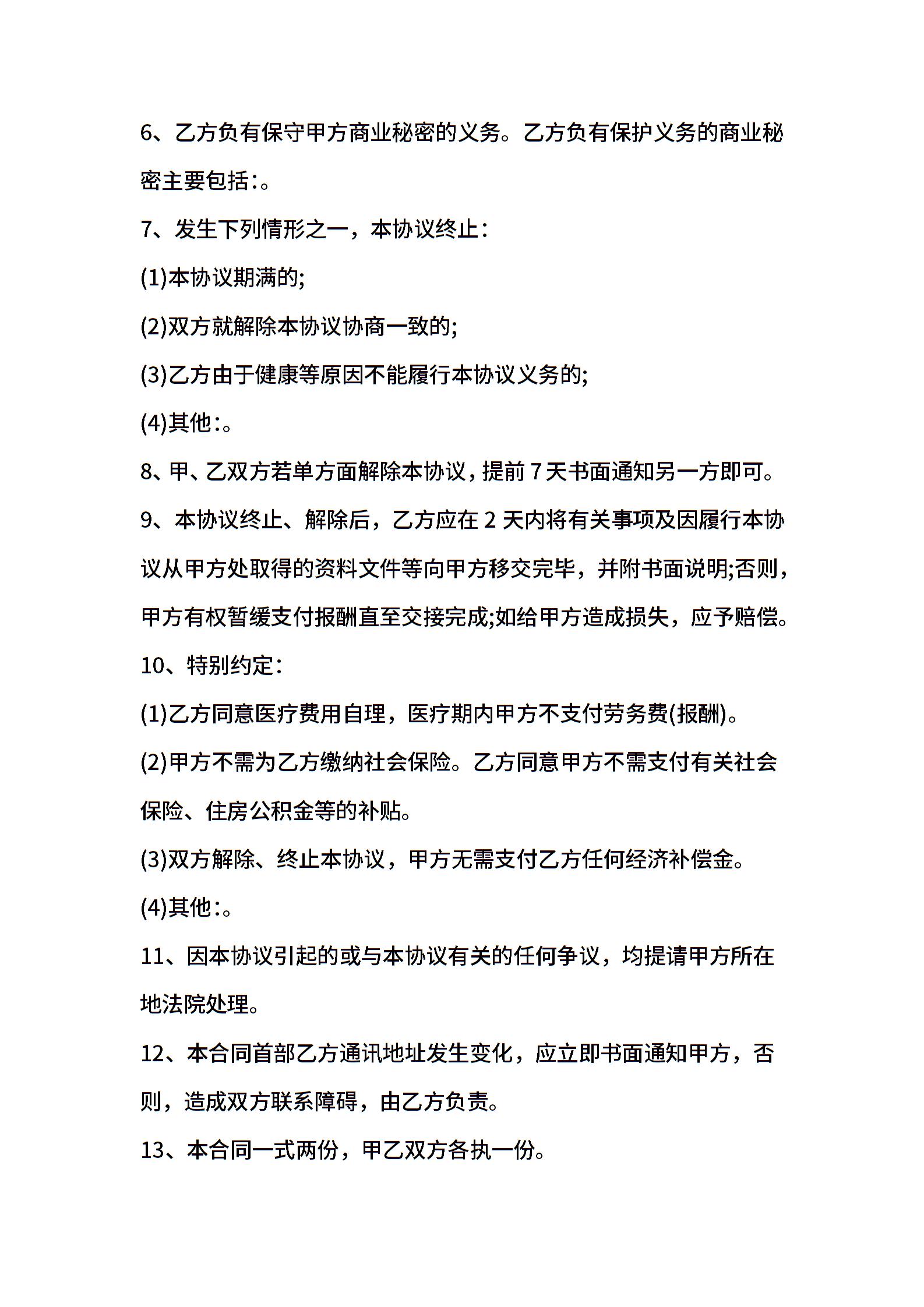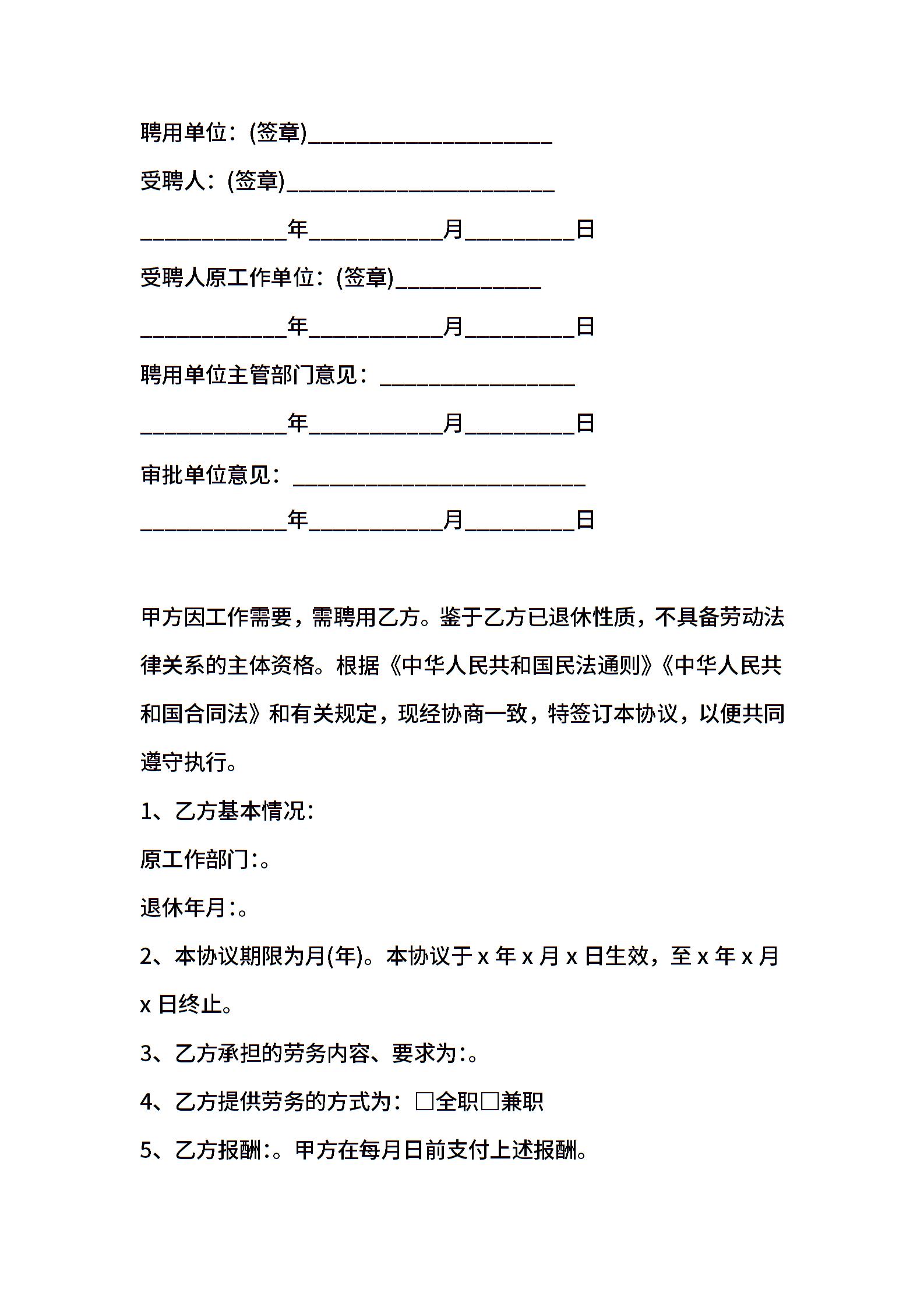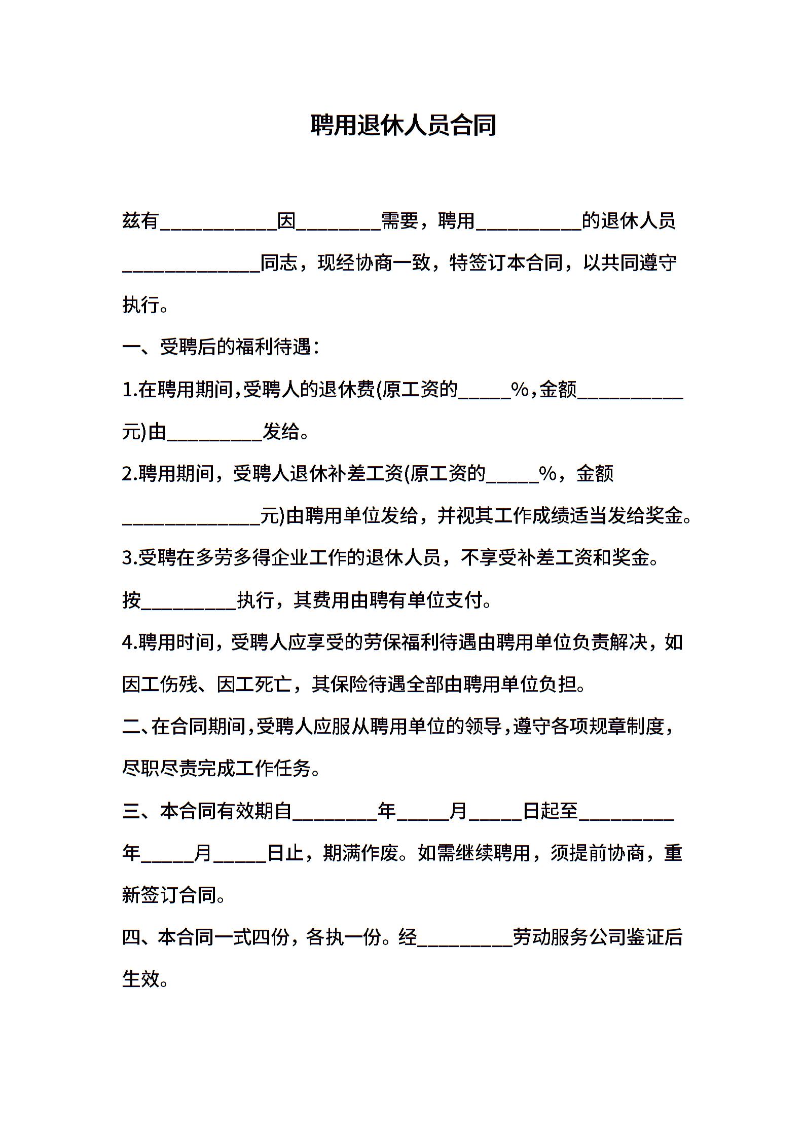 聘用退休人员合同书