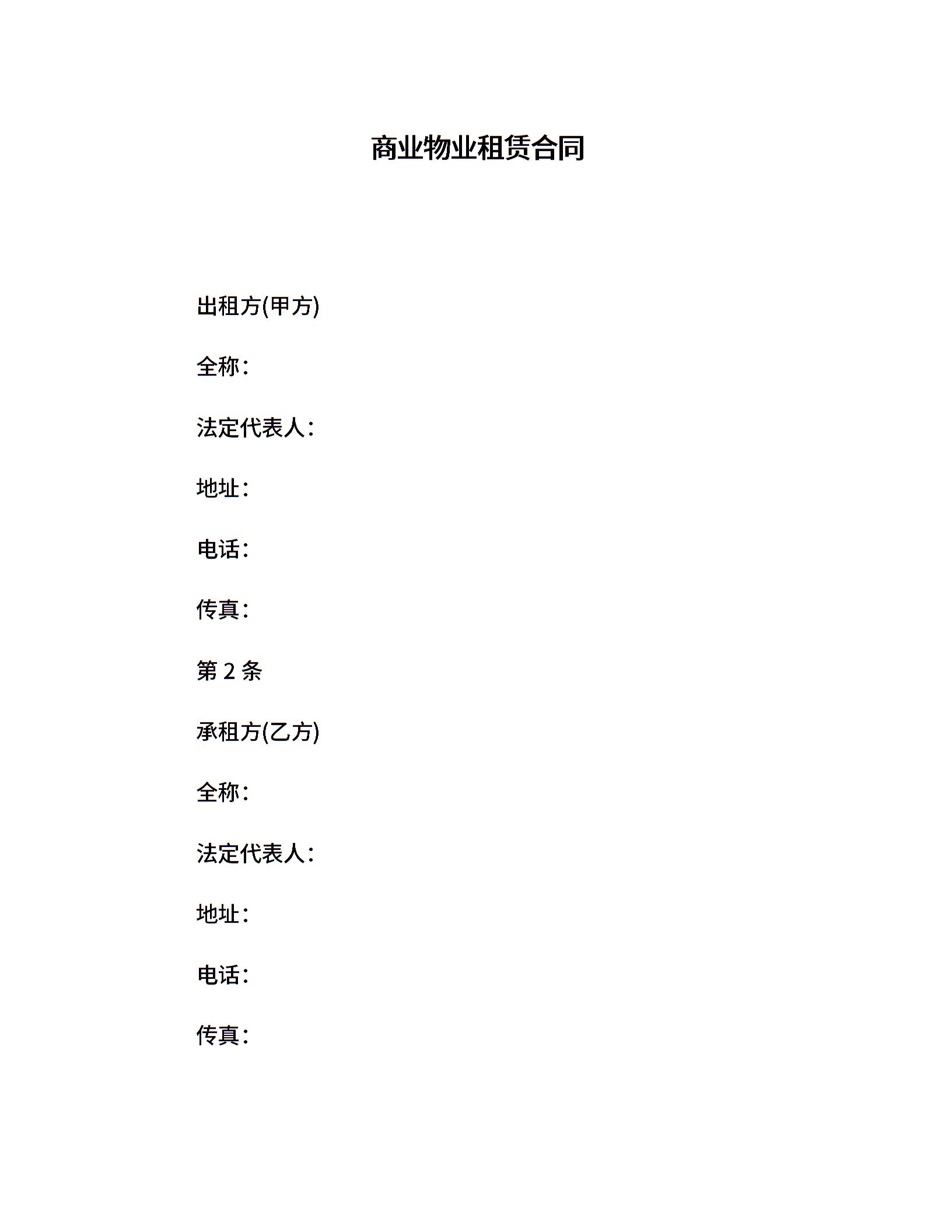 商业物业租赁合同