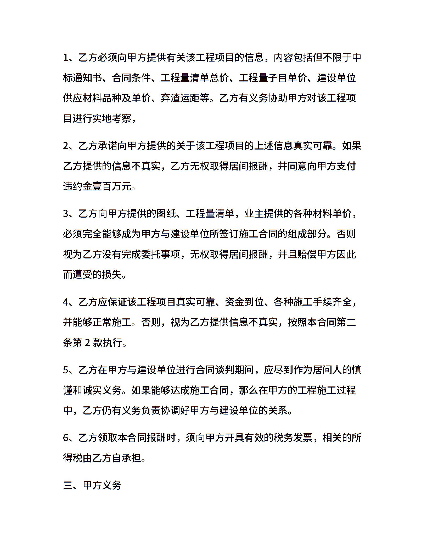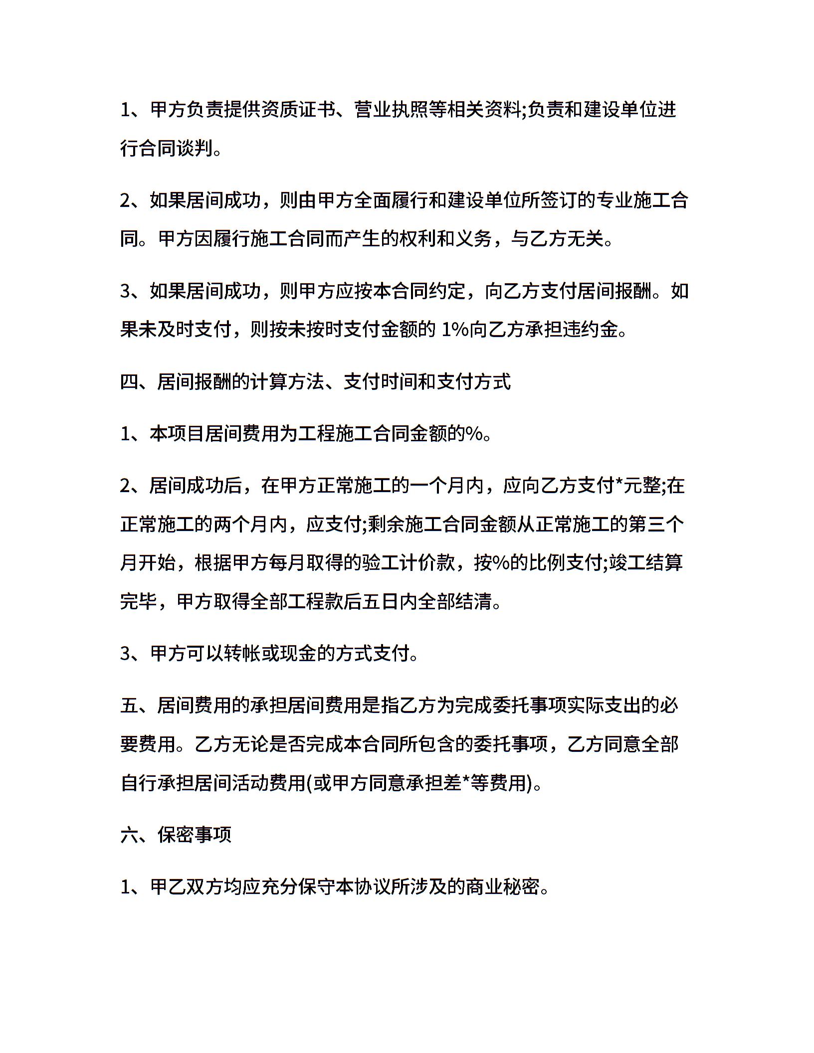 工程居间合同范本