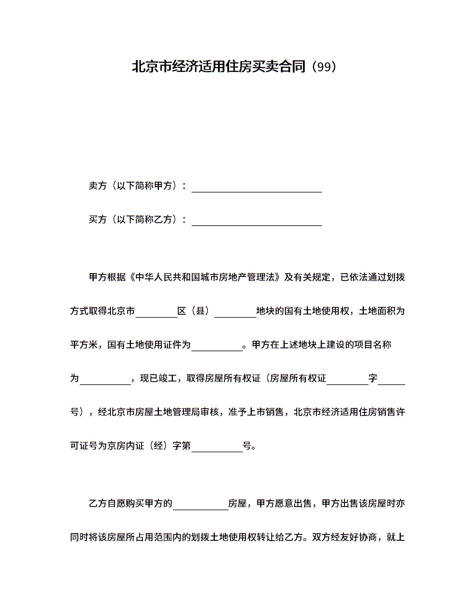 北京市经济适用住房买卖合同(99)