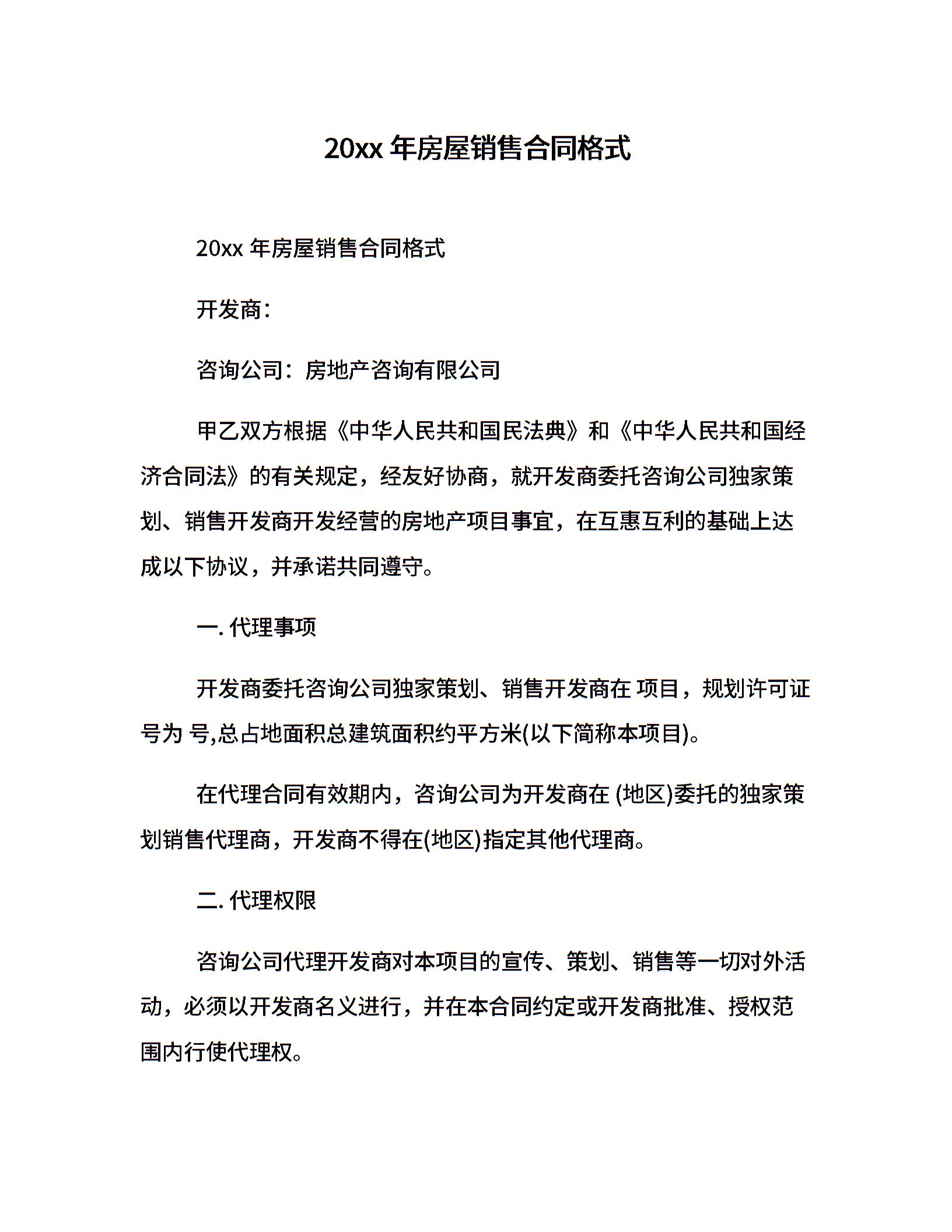 20xx年房屋销售合同格式