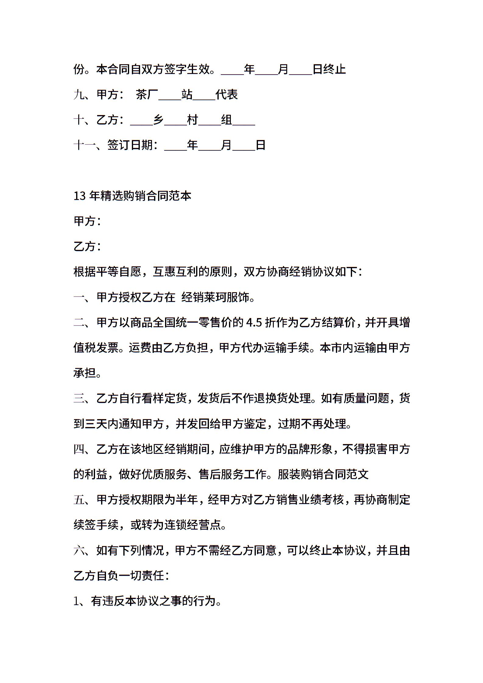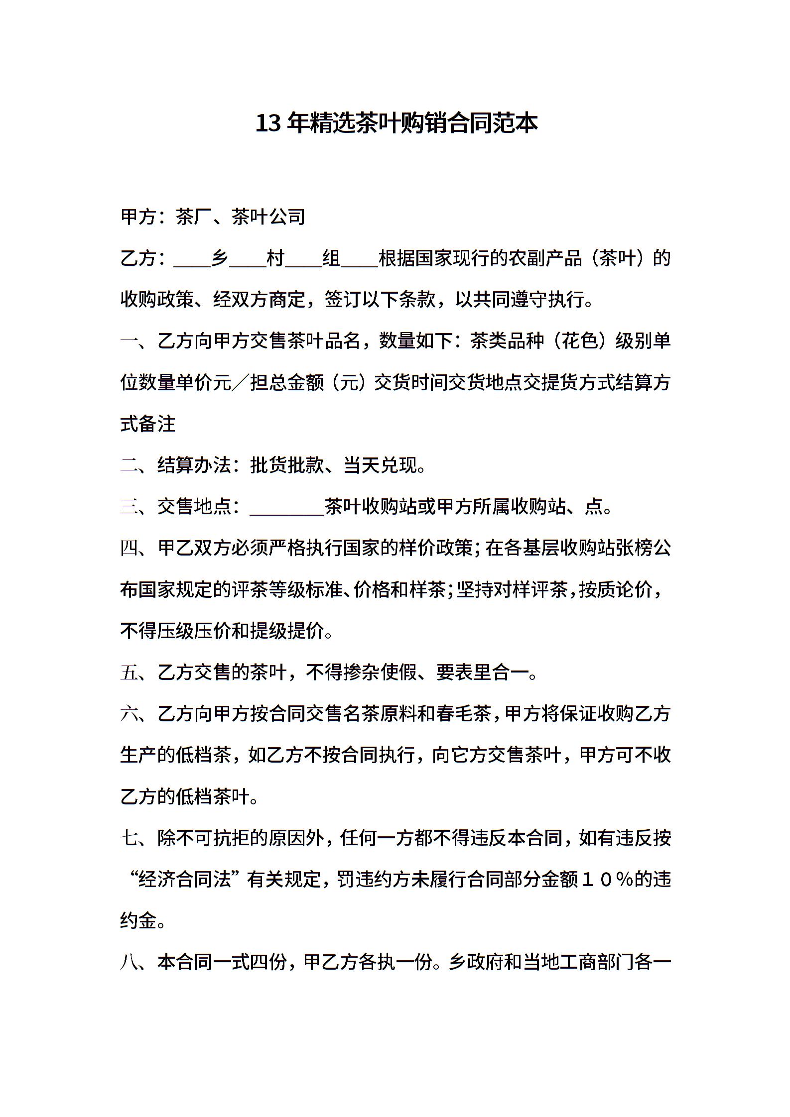 13年 茶叶购销合同范本