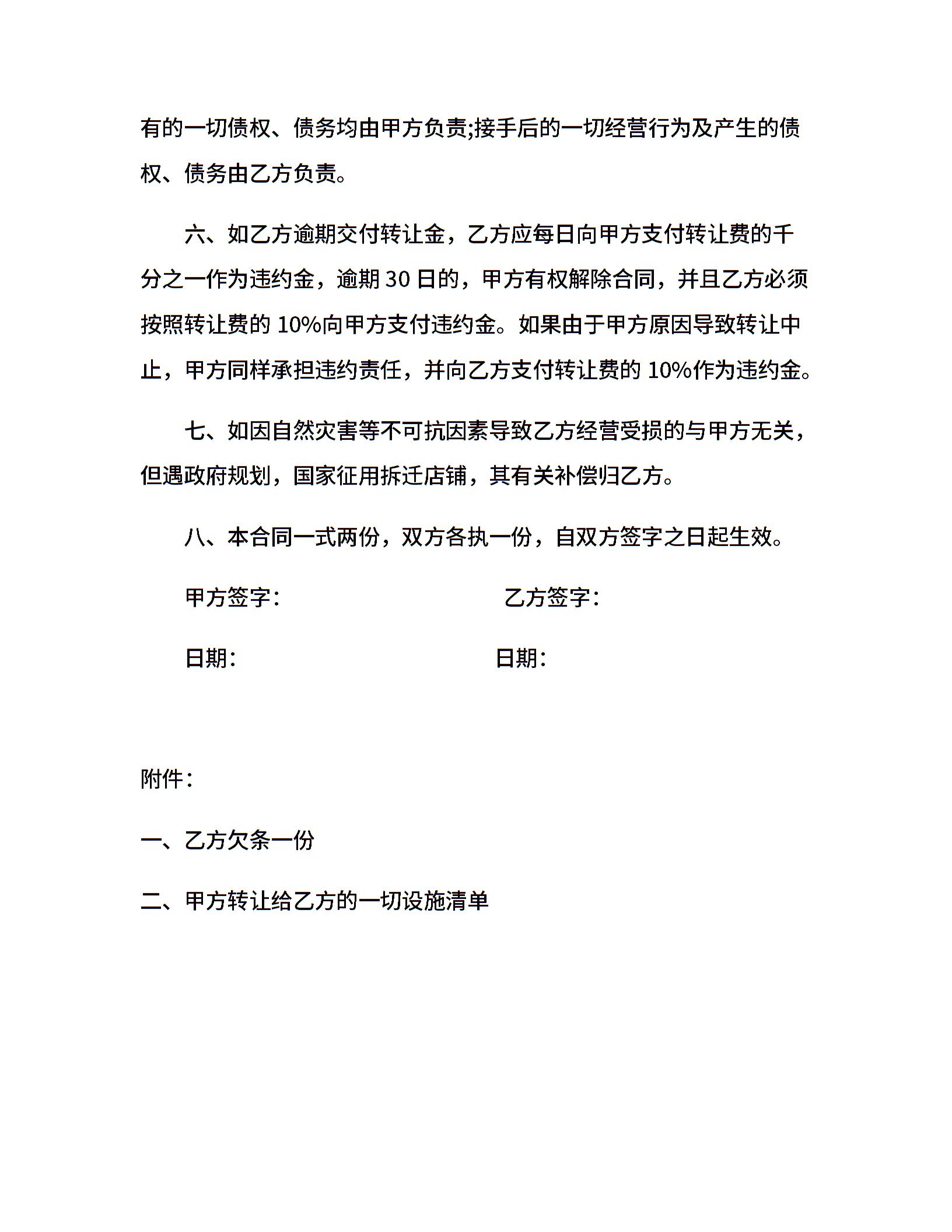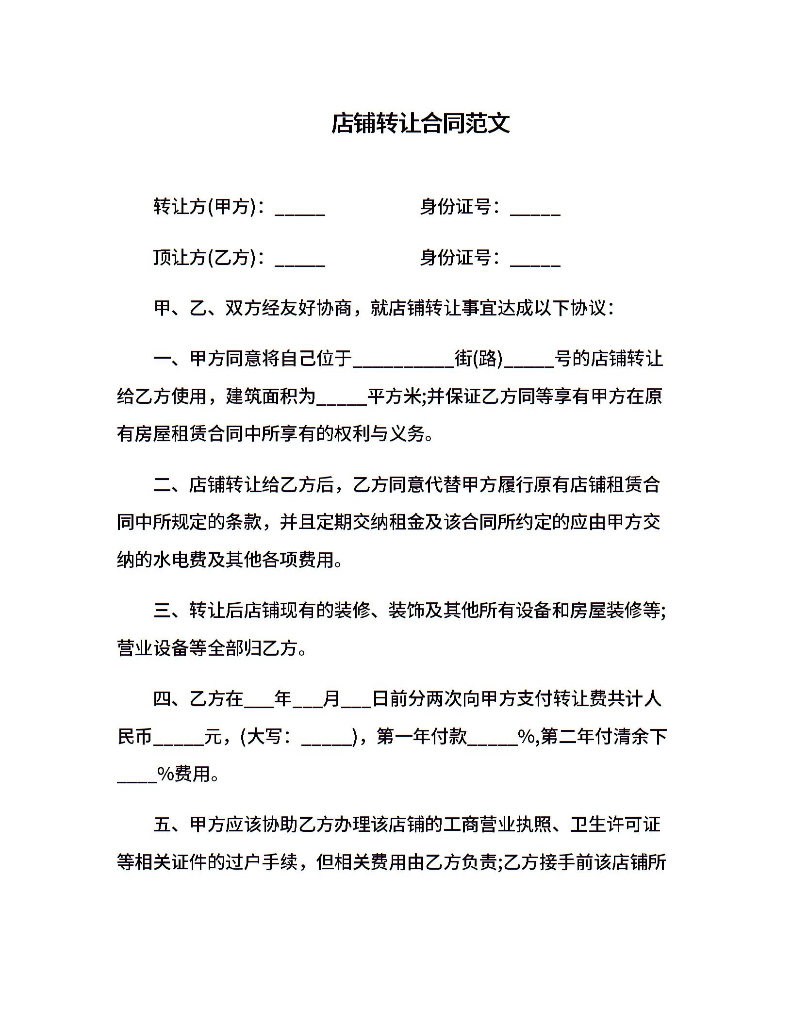 店铺转让合同范文