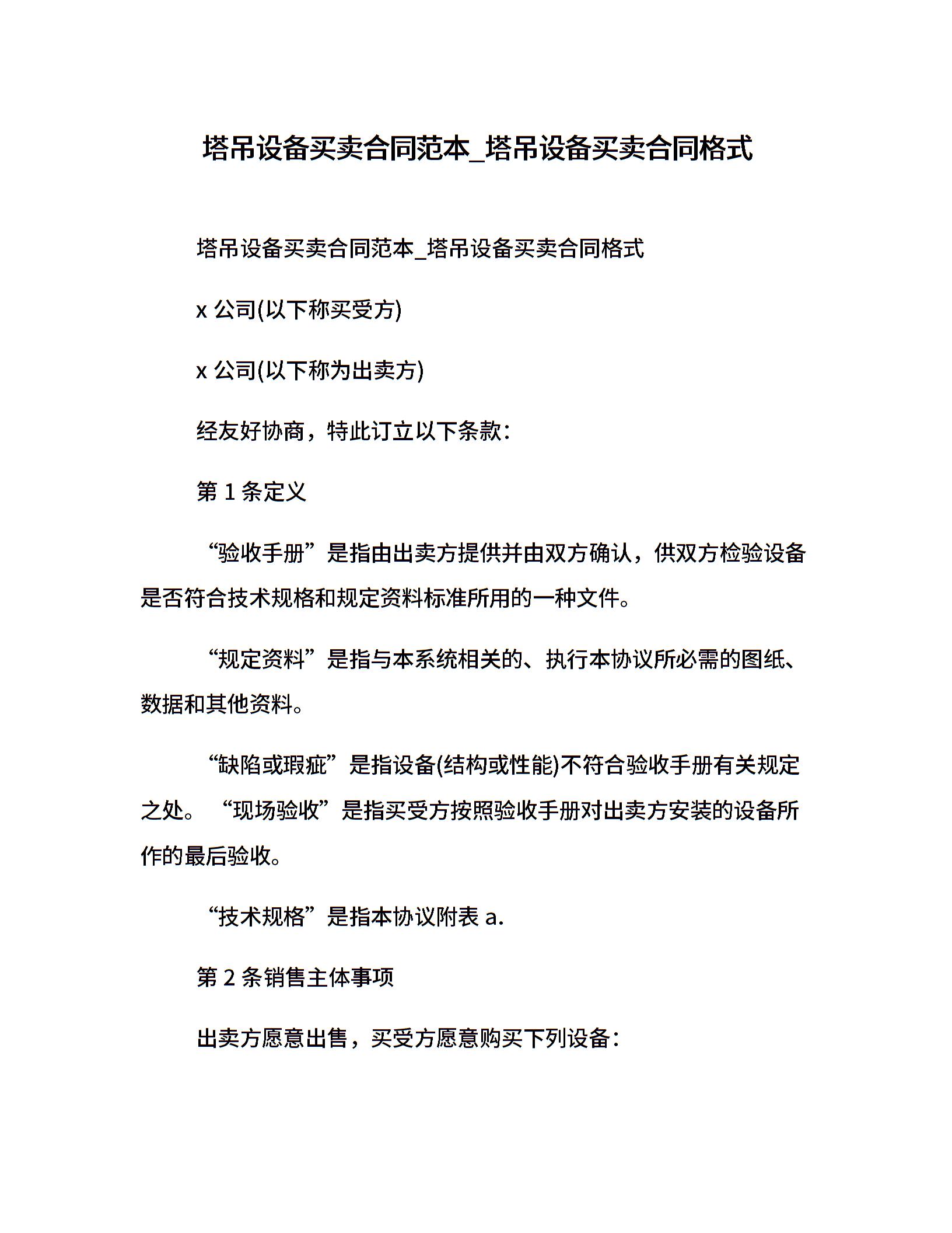 塔吊设备买卖合同范本_塔吊设备买卖合同格式