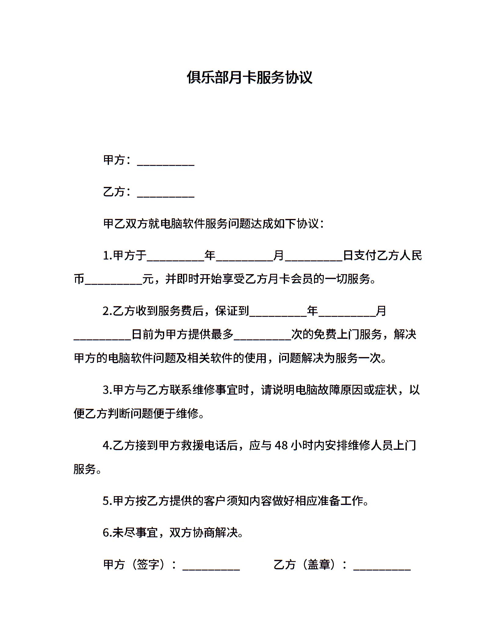 俱乐部月卡服务协议