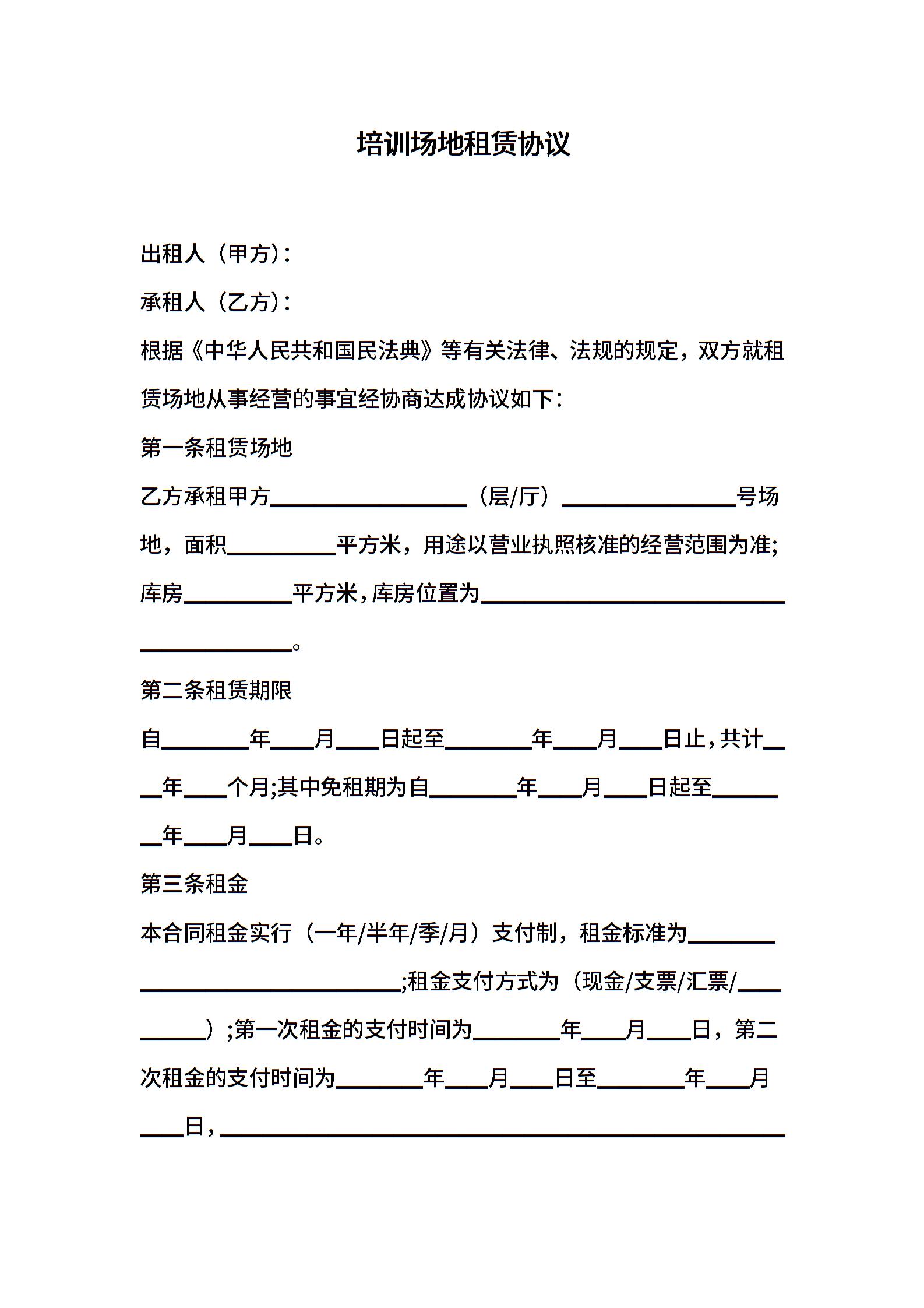 培训场地租赁协议