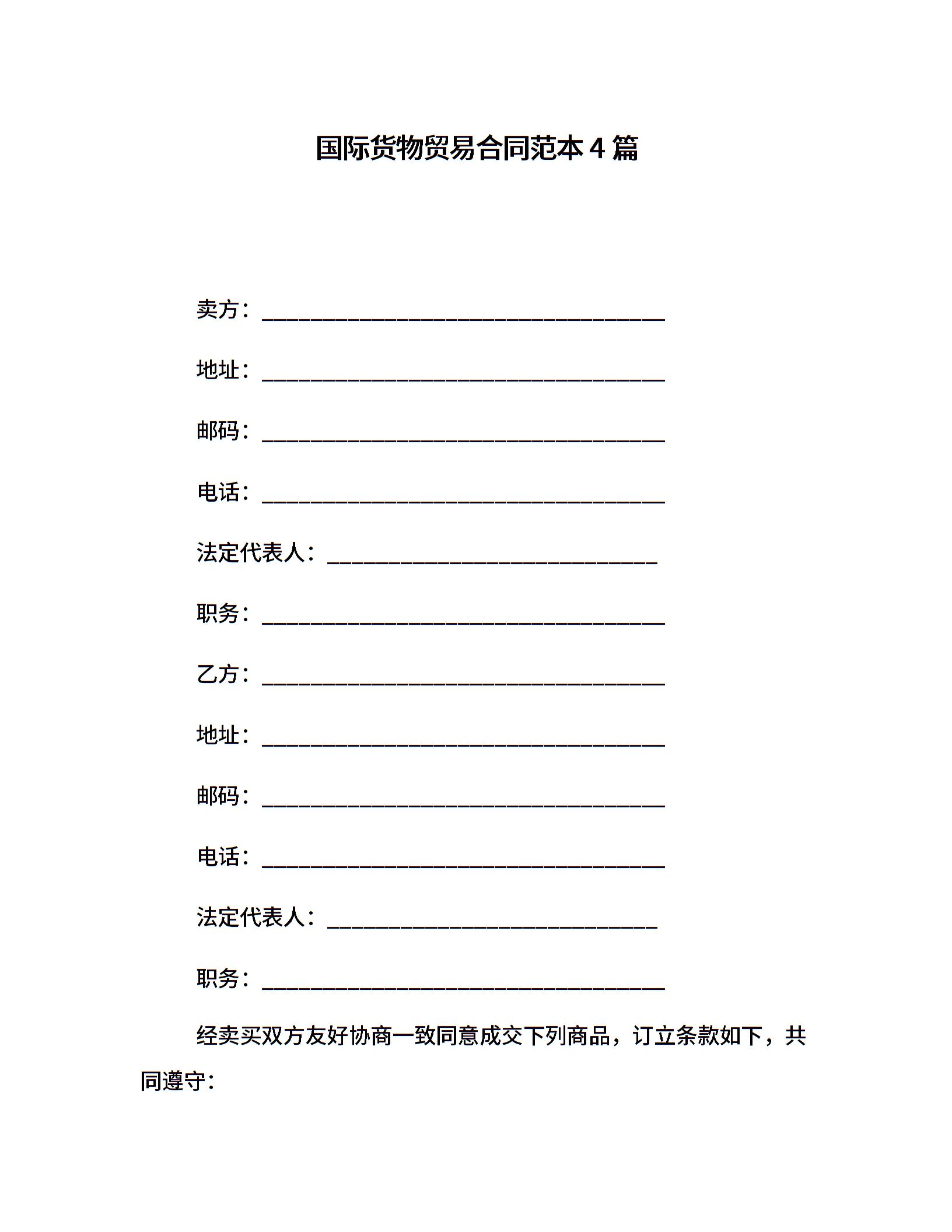 国际货物贸易合同范本4篇