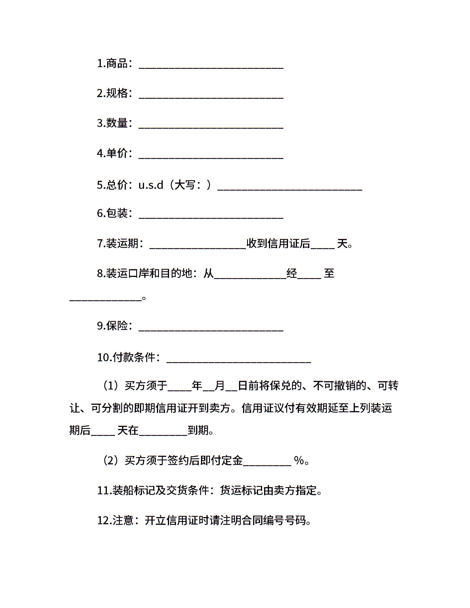 当前位置:量子办公 > 合同模板 > 贸易合同 >