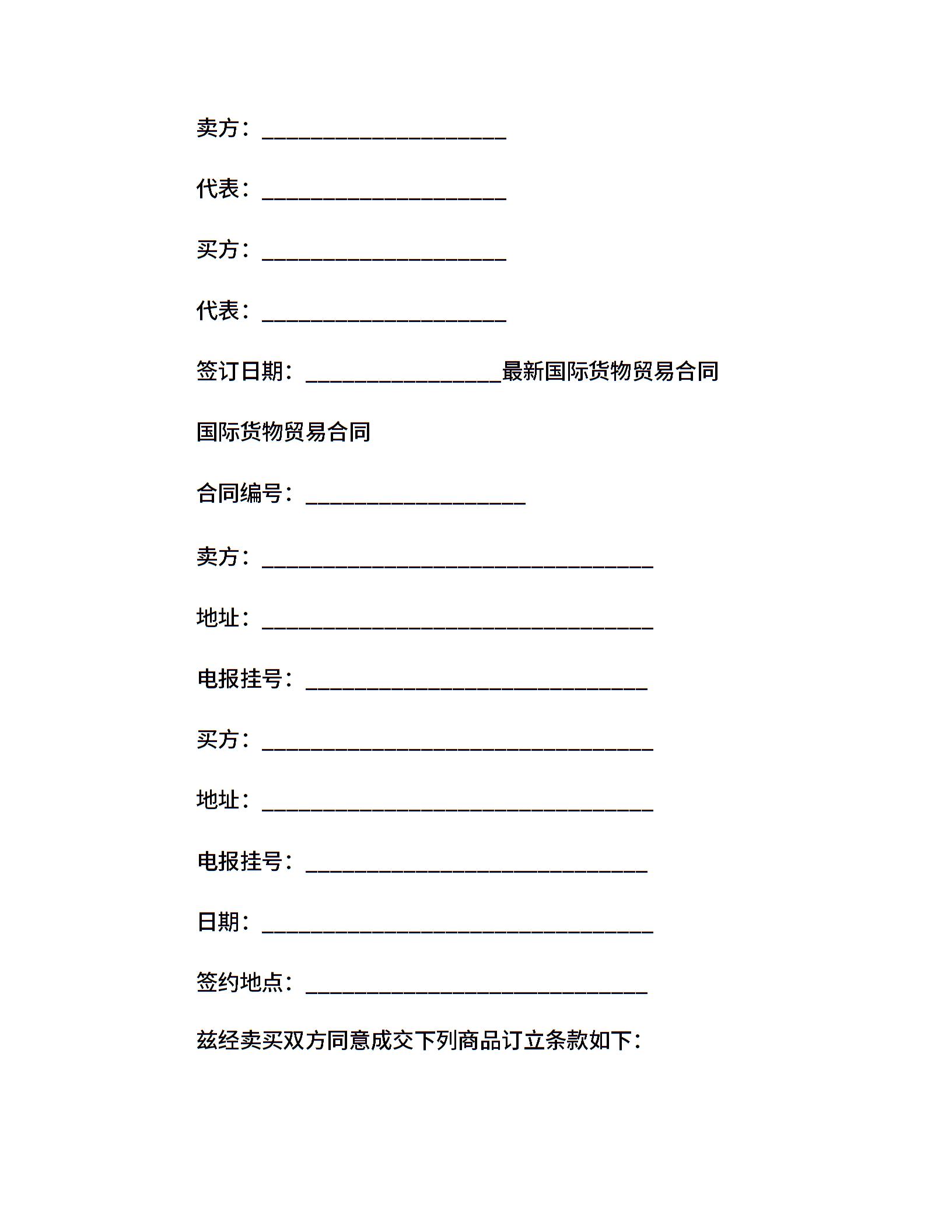 • 分类 贸易合同