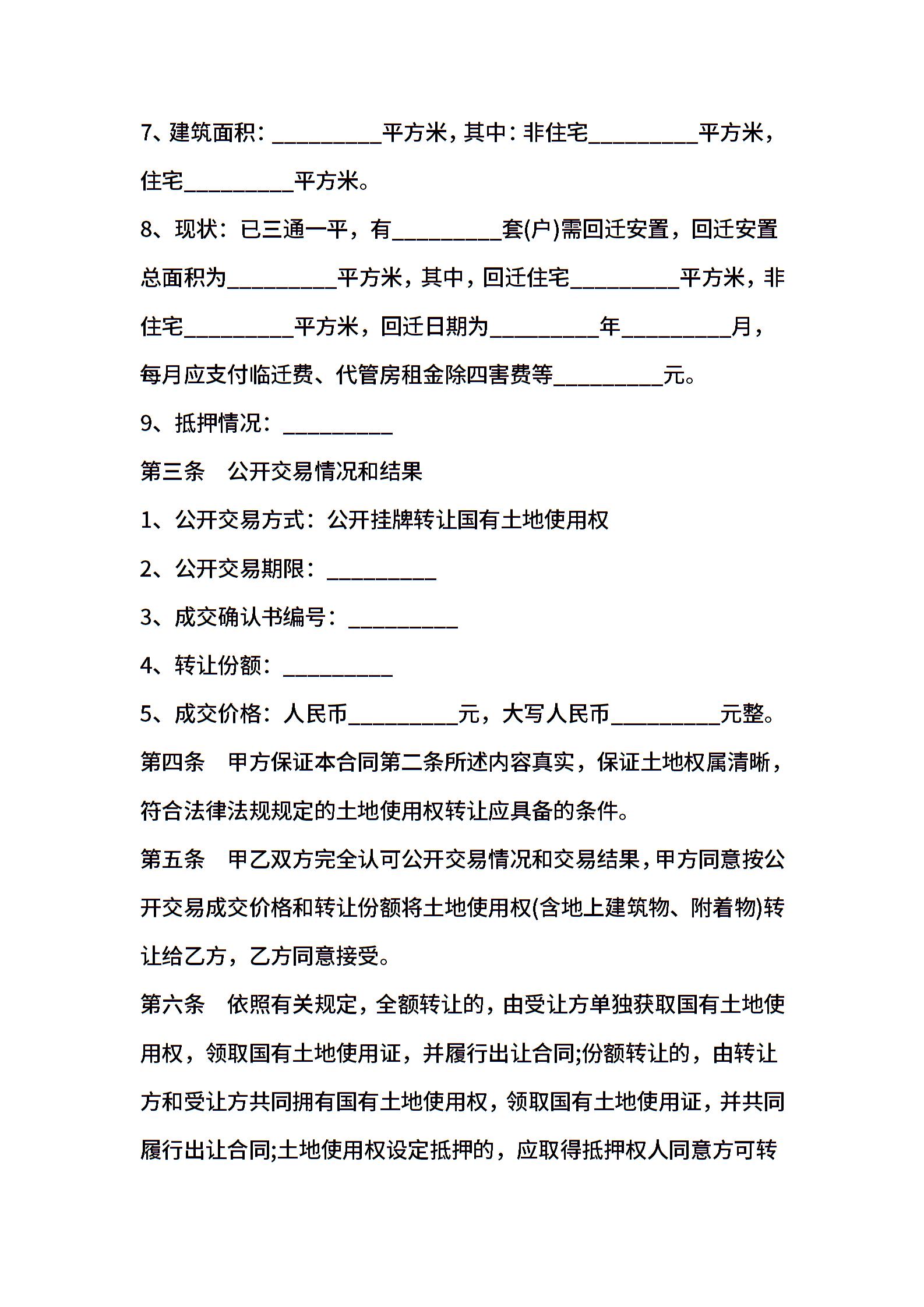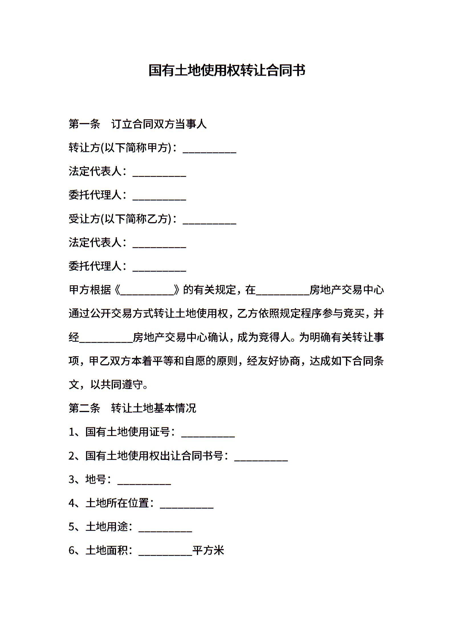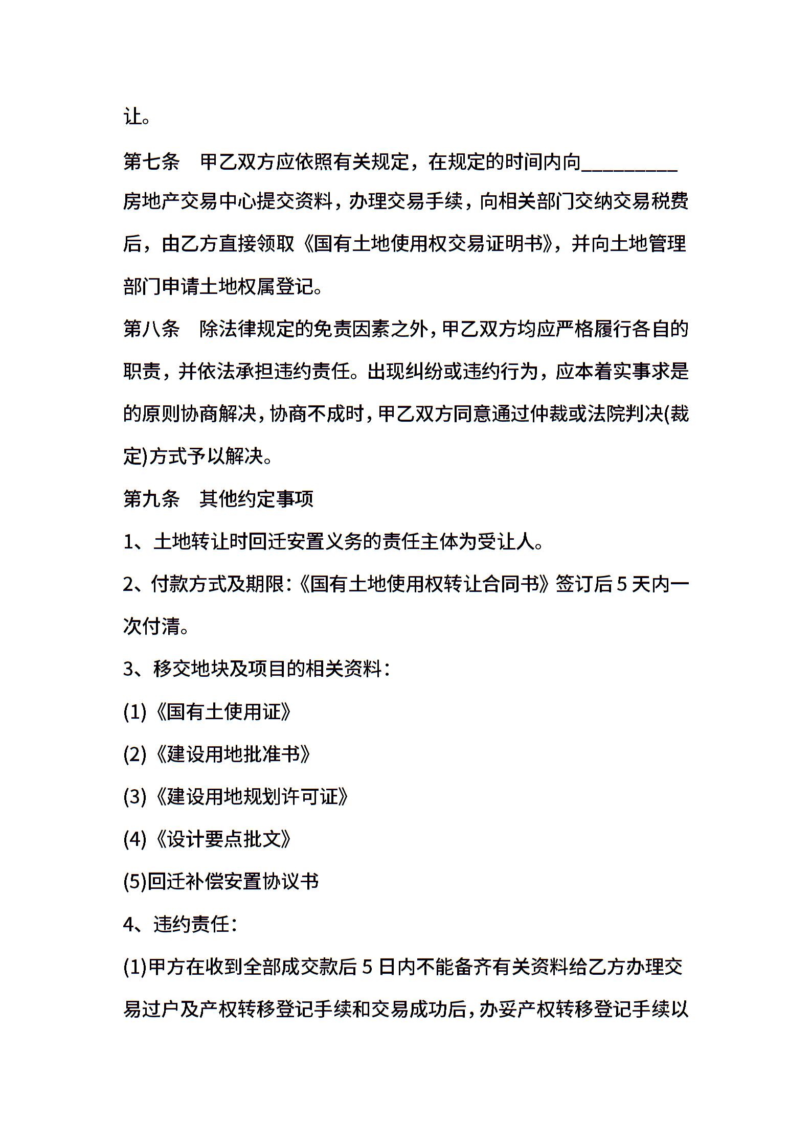 国有土地使用权转让合同书