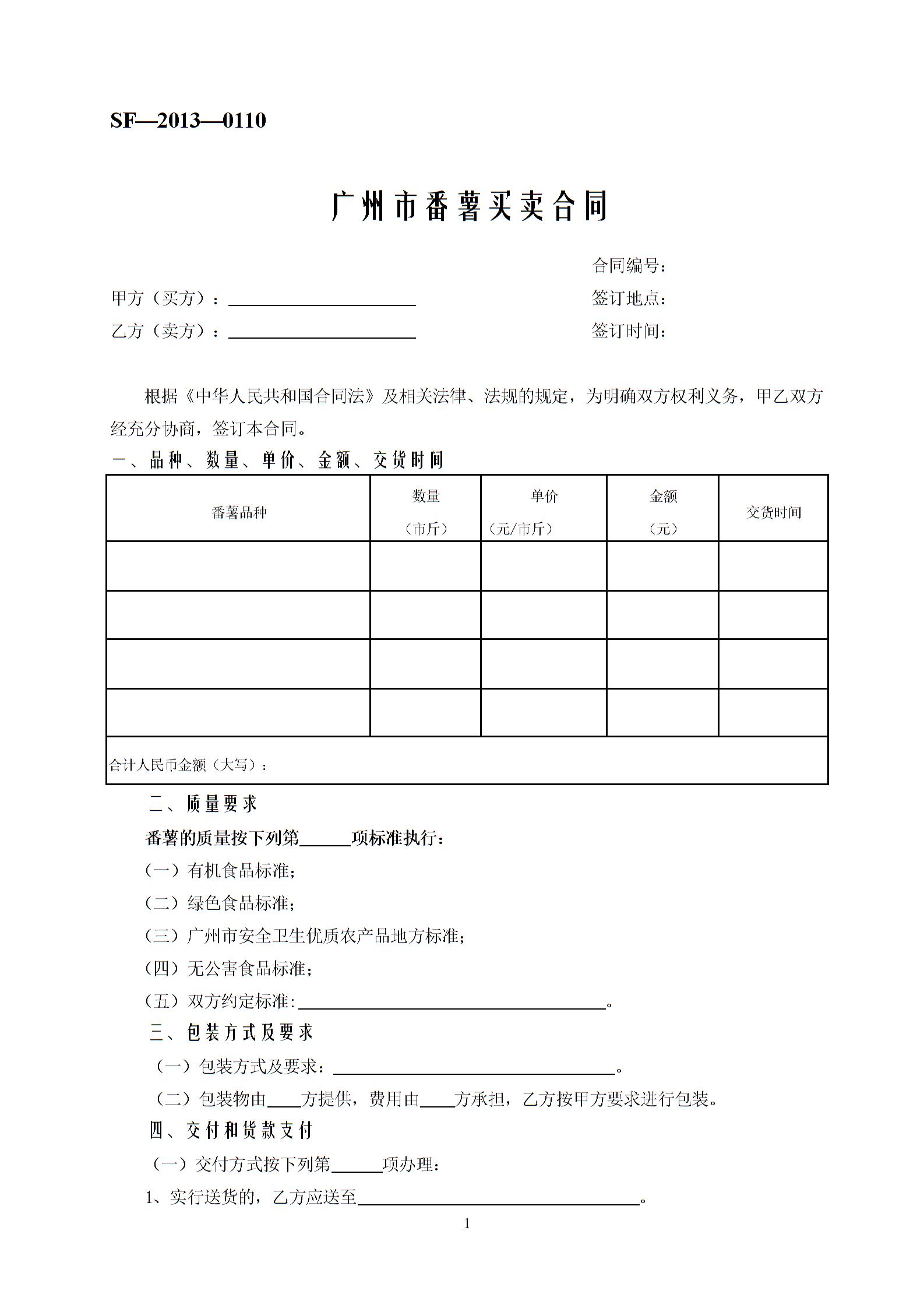 广州市番薯买卖合同
