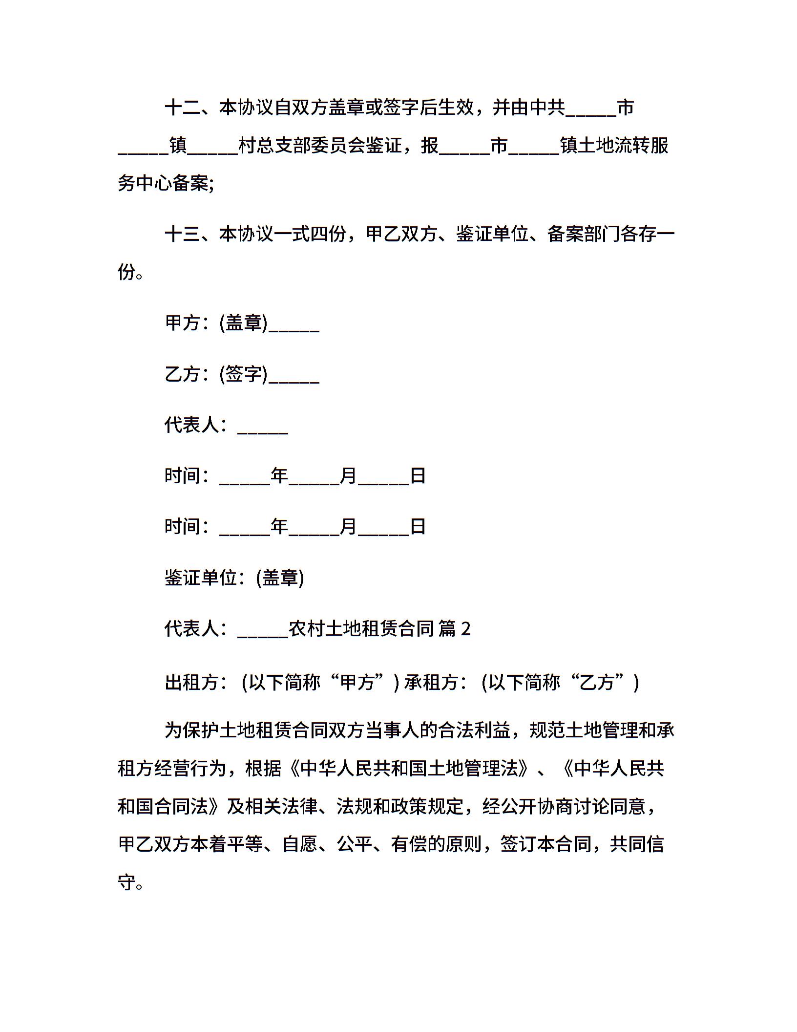 农村土地租赁合同