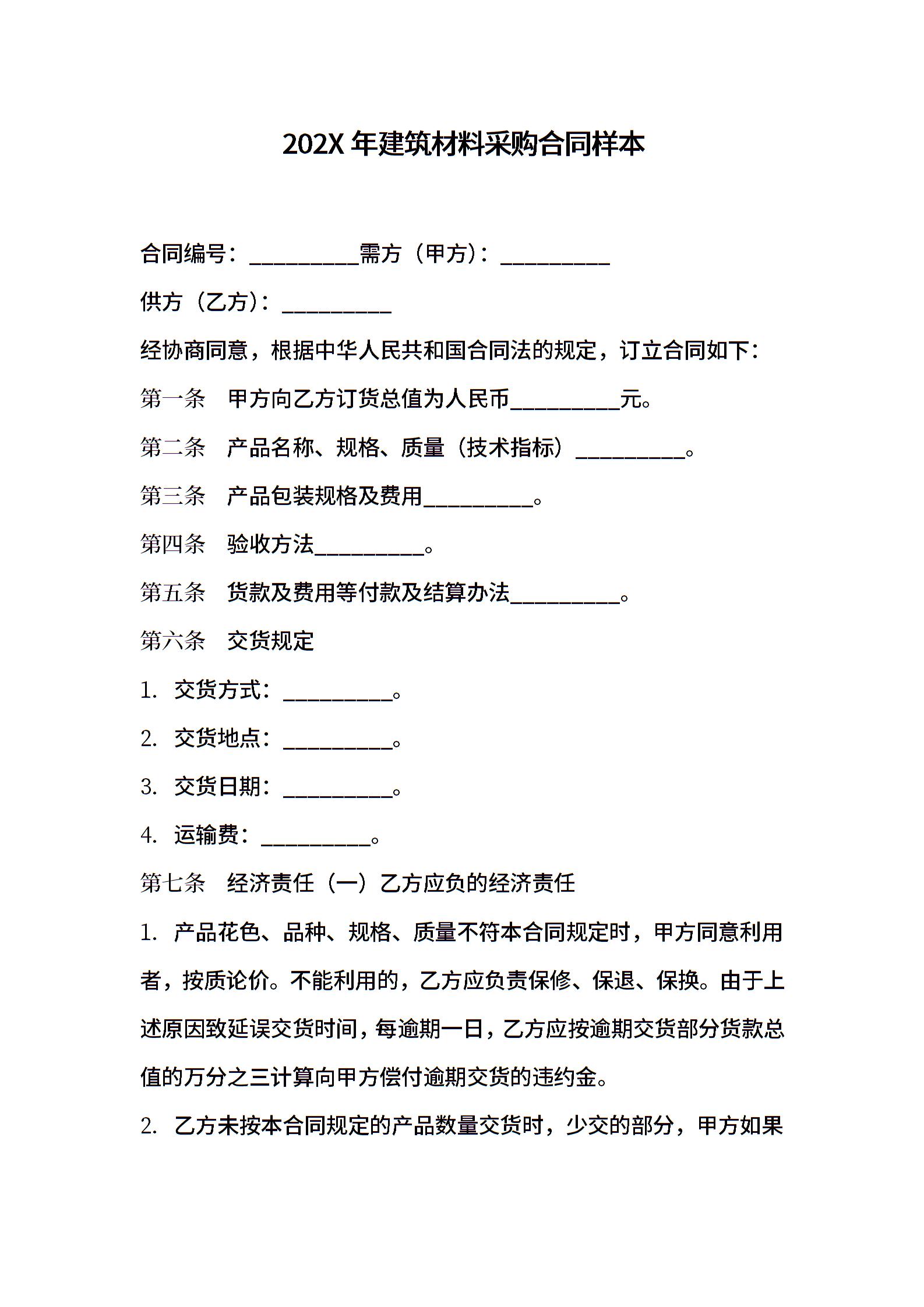 202X年建筑材料采购合同