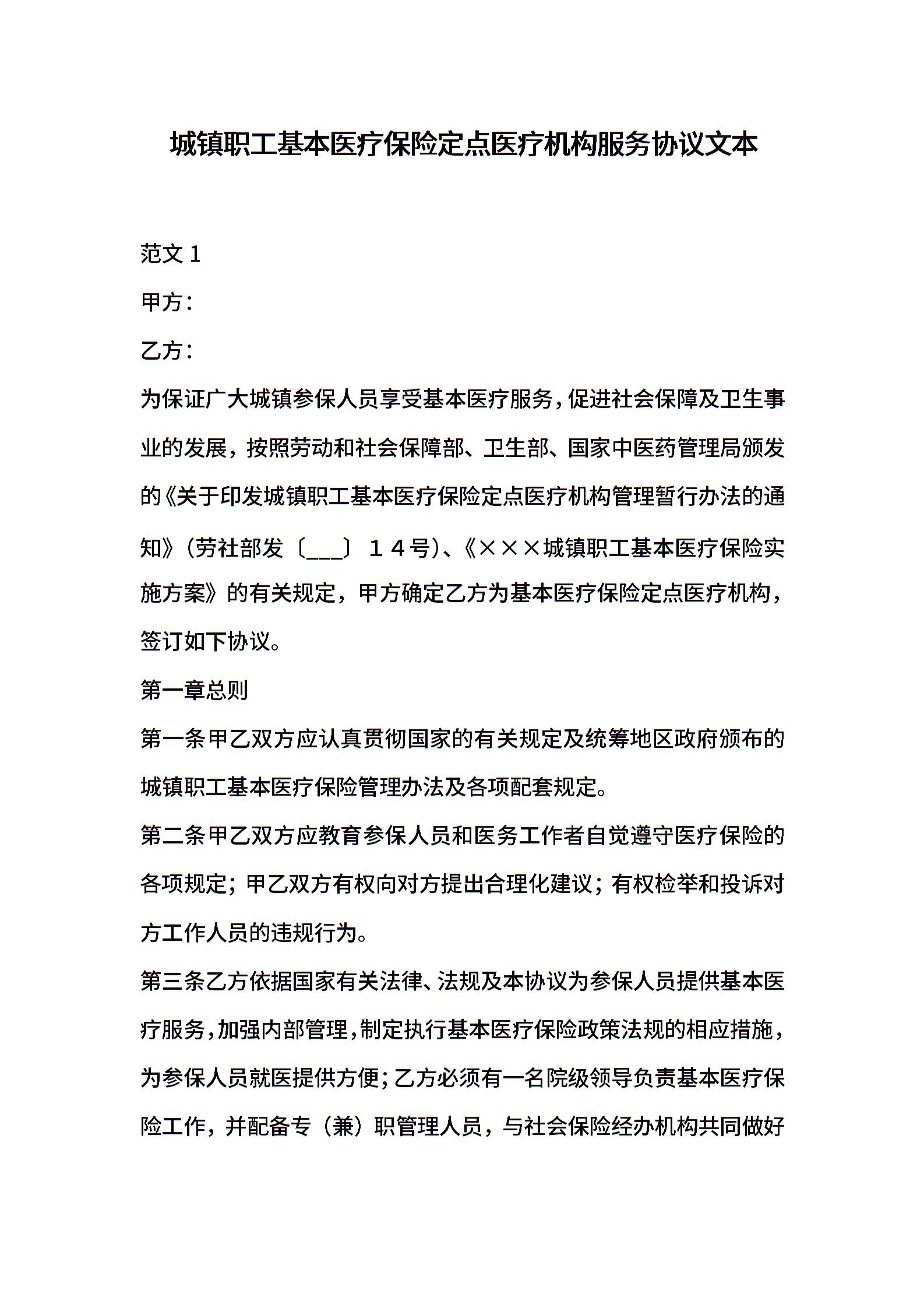 城镇职工基本医疗保险定点医疗机构服务协议文本