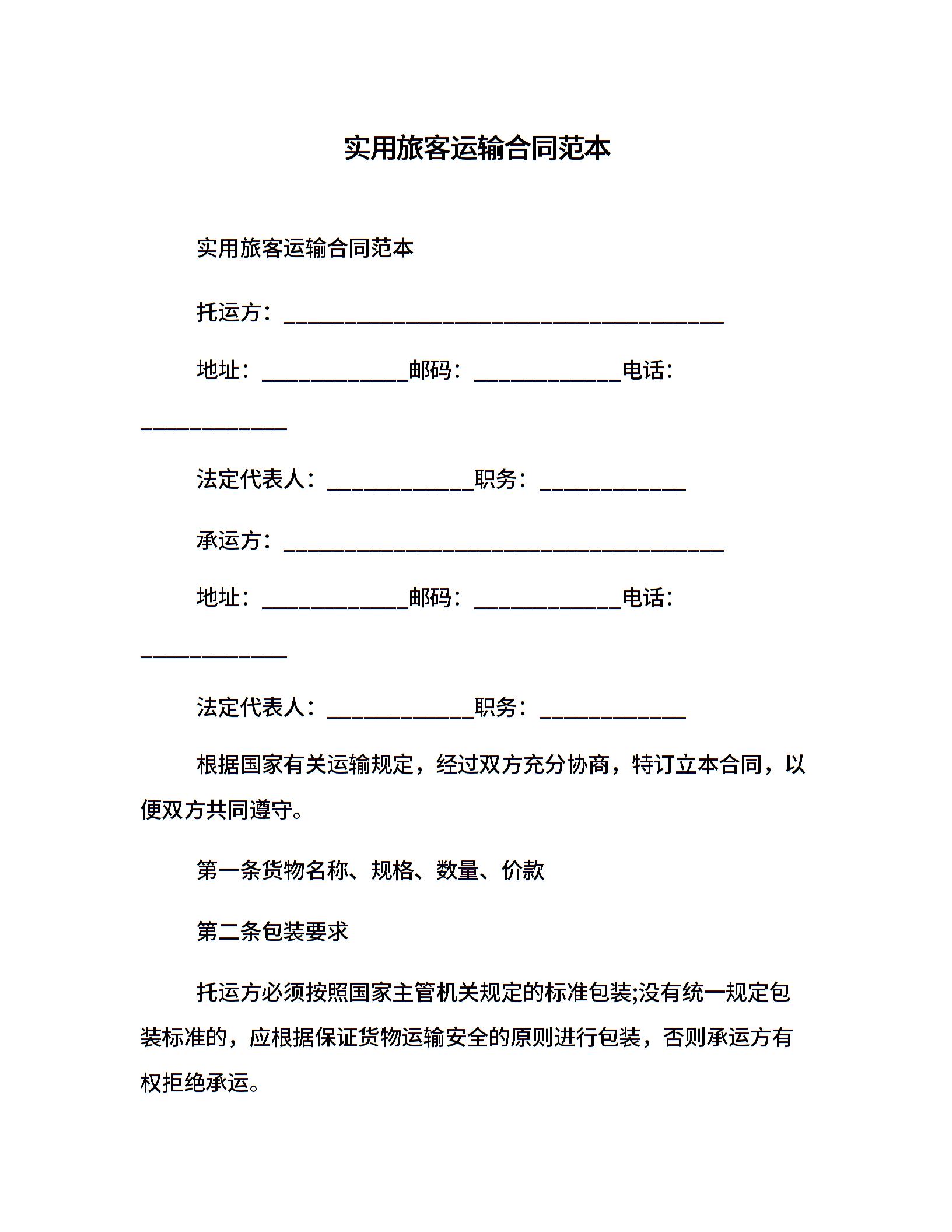 实用旅客运输合同范本