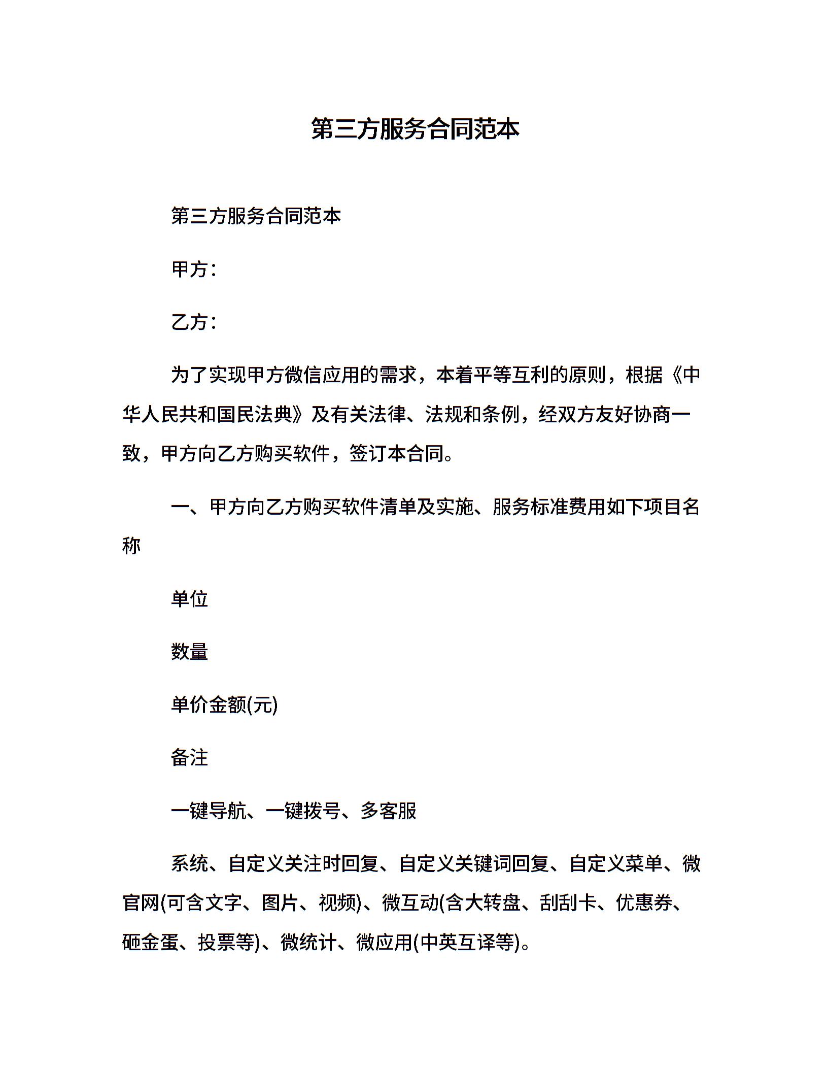当前位置:量子办公 > 合同模板 > 第三方服务合同 >