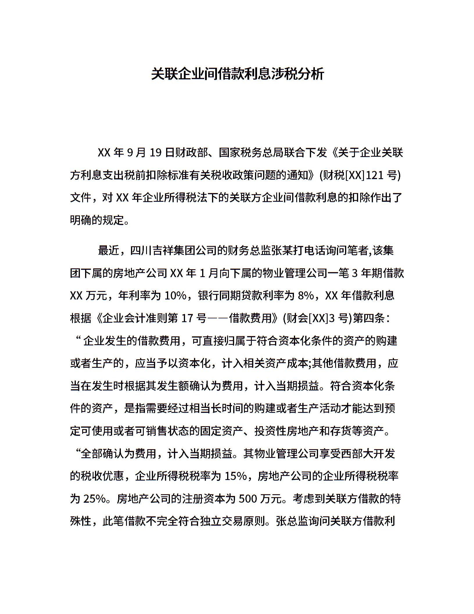 关联企业间借款利息涉税分析