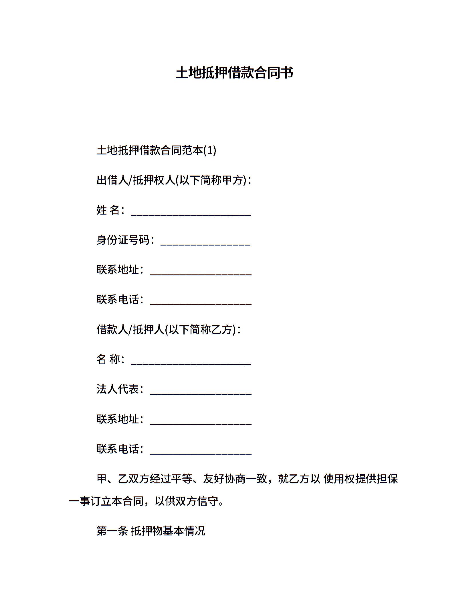 土地抵押借款合同书